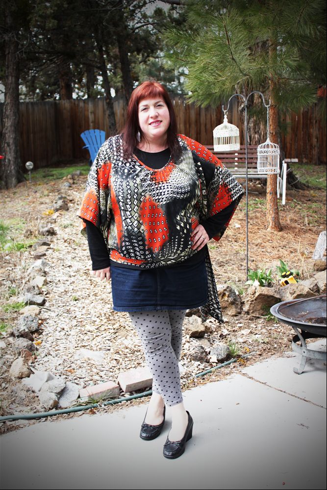 So I love the idea of mixing patterns, but I’ve never really tried it. I’ve wanted to, but haven’t had the guts. I decided to go for it today. I actually started with my polka dot leggings & went from there. The shirt I’m wearing is in colours & a pattern that I wasn’t immediately drawn to, but I love the style & how it hangs, so I’ve grown to love the pattern & colours. I’m actually really happy with this outfit & I’m excited about trying about more pattern mixing.