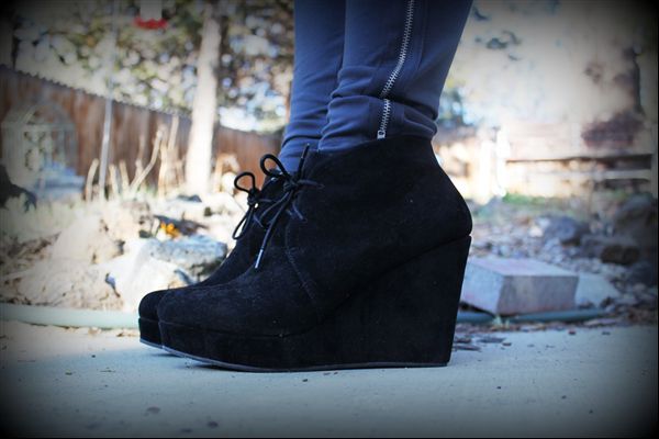 My leggings are from the super clearance sale at Old Navy, but I’m not too sure about them. I love the zipper on the side, but they are so long! My shoes from Forever 21 are so comfortable, I can’t believe how high they are & I’ve been wanting a pair of wedges like this for ages. It’s a grey & black outfit so I added a bit of colour with my earrings.