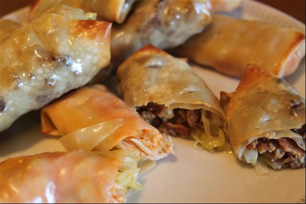 So I saw these rolls on Pinterest & I had to try them. They looked so good & so easy. I tried them last night & I really liked them. I did some of them buffalo chicken style & some of them I used left over bacon cheeseburger filling from Jude’s party (that’s another post). Fixed using this recipe they are low-fat & healthy & really yummy. Colin & the boys weren’t completely thrilled with the wonton wrappers – they don’t crisp up like they do when they’re fried, but I thought they were good.