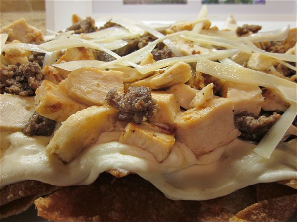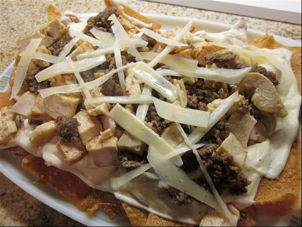My favourite dish at Johnny Carinos is their Italian Nachos. Love it. Since it’s still blustery & cold, my Mom & I decided to make these nachos instead of more traditional Memorial Day fare.