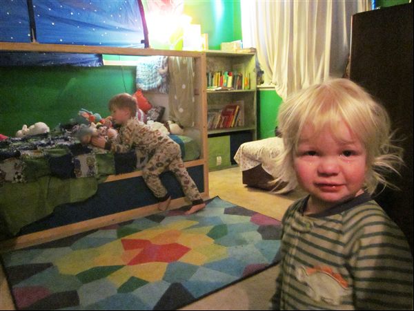 Zane did great on his first night in the big boy bed. He got up a couple of times after we put him to bed & started playing, but then settled in & slept the night through.