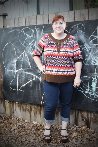 I love this top! I got it at Ross years ago & it’s definitely vintage-inspired. Super comfortable too. I don’t wear a lot of brown, but I couldn’t resist the colour combo & the great pattern. It’s nice to have something to wear my only pair of brown shoes with too.