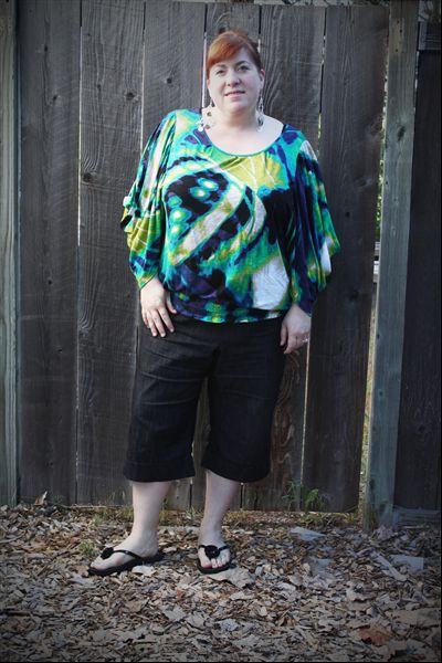 An outfit post! Yes, I’m still wearing clothes this Summer, just having trouble coming up with blog-worthy outfits. It’s all about staying cool. I love the sleeves on this top. I think I got it on clearance at JC Penney. I like clothes with interesting details. These capris are pretty much my Summer staple so far, but every time I look at photos of them, I don’t think they are particularly flattering. I’m thinking about turning them into shorts. Just need to get at my sewing machine again – there are several things I need to alter.