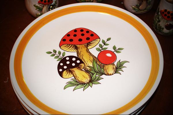 A couple of weeks ago, I got to spend the day with my Mom. It was a lovely birthday present. We went to some thrift & vintage stores – one of my favourite things to do. We also had a yummy lunch. We both found some gems, but my favourite find was a set of Merry Mushroom dishes from Sears Roebuck & Co from 1977 & 1978. It’s actually two sets & neither is complete, but there are enough of both to make a set. It was only $8! So much fun.
