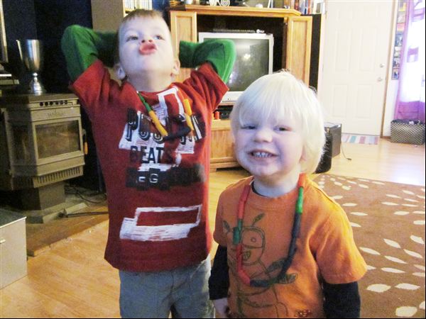 Anyway, we finally got around to doing something with some of the coloured pasta last week. We made simple necklaces. Good fun. I even made one & wore it all day – I felt quite fancy!