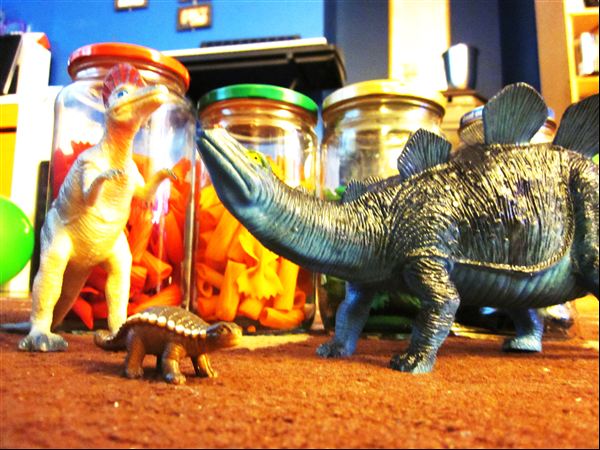 A while back I made some coloured pasta. It’s easy to do & my oldest son loved helping out with it. It does involve food colouring, so make sure your zip lock bag is actually sealed before shaking it up. If you don’t, you might end up redecorating your kitchen in blue like we did! You can find instructions here. I’ve also done something similar with rice & it’s great too. Zane wanted to make sure that the dinosaurs were the stars of the photo & not the pasta…