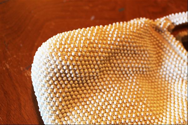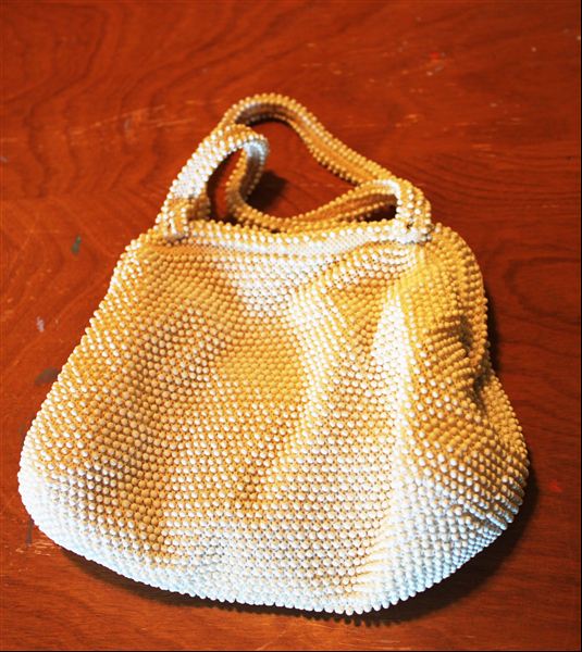 At the jewelry counter, I found a sweet little vintage handbag. The opening mechanism is cool – can’t really show that in a photo, and the beaded fabric is nice. It was priced at $5.99, so half of that…