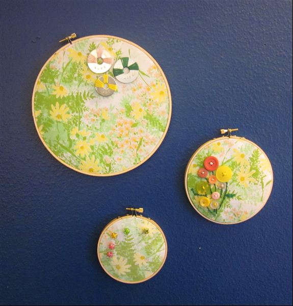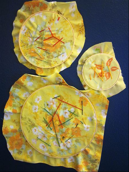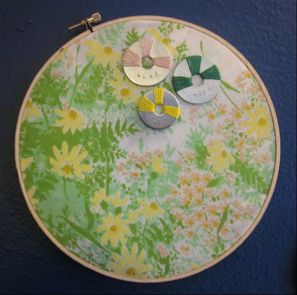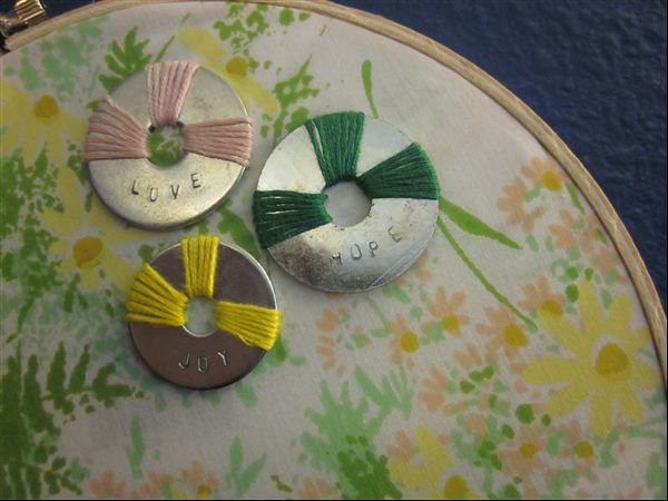 I love that these are things that I can take along with me and sew when I am out and about. I can also use other crafty bits and pieces in these creations and every hoop I create will be unique. I play with the pattern of the sheets sometimes and other times I kind of ignore it and just use it as background.