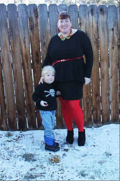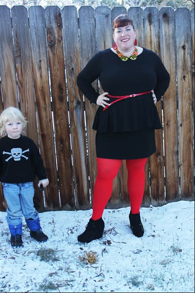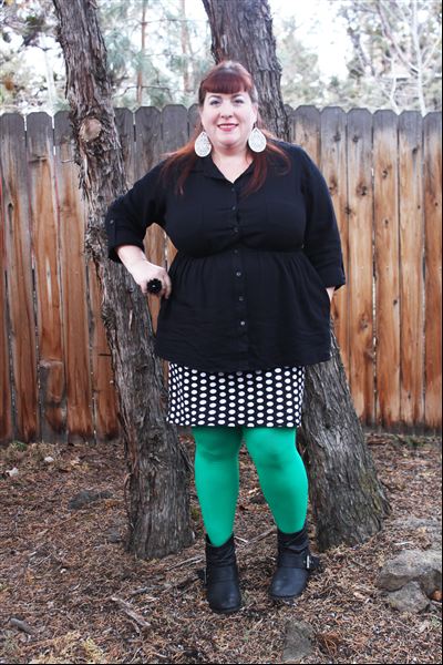 Outfit details: Top: Torrid, Skirt: Ross, Tights: We Love Colors, Boots: Ross, Earrings: Forever 21, Ring: ?