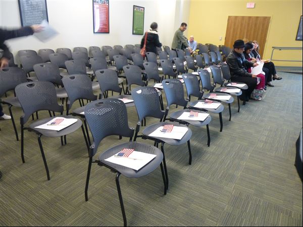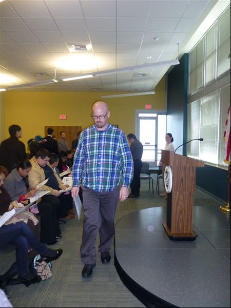 Last year, we decided to start the naturalization process for him to become a citizen. He had a green card, but we figured it would just make life simpler if he had US citizenship. It was a reasonably simple process – paperwork, money and a couple of trips to Portland. It culminated in our final trip to Portland last Tuesday for Colin’s final interview which lasted ten minutes and then a naturalization ceremony in the afternoon. All of the sudden, I was married to a US citizen!