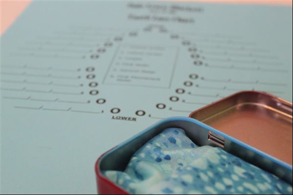 I wanted a way to keep track of when Jude lost his teeth as well so I made up a sheet that has his name on it and a tooth chart with places to fill in the dates that he loses his teeth. My first thought was to glue the cushion to the bottom of the box, but as I was going along, I liked the idea of the cushion being removable and being able to store the chart underneath.
