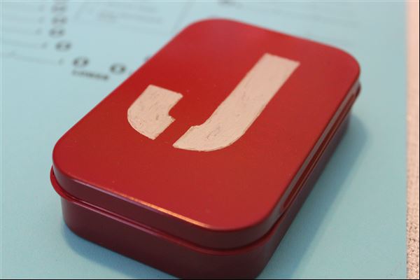 I began with a metal mint box, spray painted it red – Jude’s favorite color.