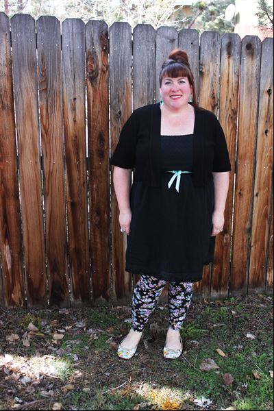 Outfit Details: Shoes – Target, Dress – Target, Leggings – Target, Cardigan – Ross, Earrings – ?