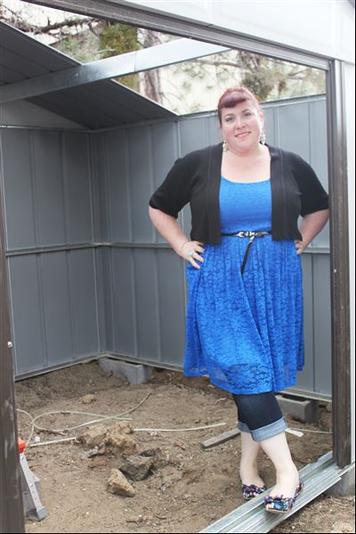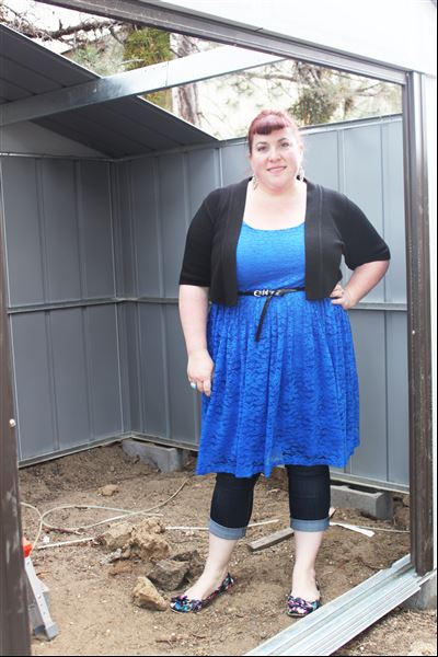 Outfit details: Dress – Ross, Cardigan – Ross, Belt – ASOS, Capris – Torrid, Shoes – Ross