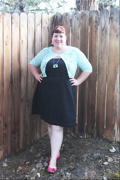 Outfit details: Dress – Target, Cardigan – Ross, Shoes – Dollhouse, Necklace – Forever 21, Earrings – ?