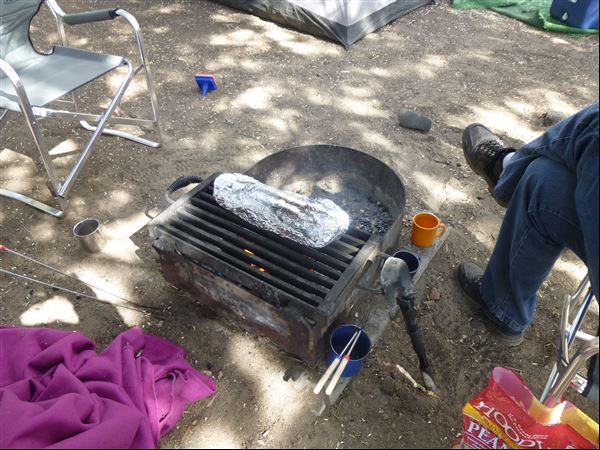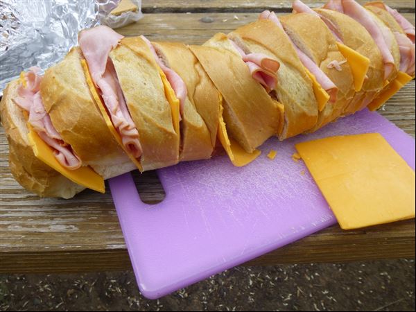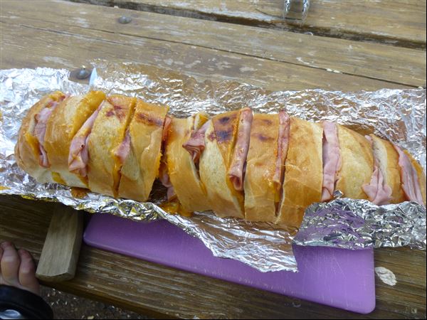We were gone three nights – I chose hamburgers and hotdogs for our first night as we would be busy setting up camp. For the second evening I made the easiest recipe for Grilled Ham and Cheese Pull-Apart Sandwich Loaf. It was a super hit. So easy and tasty and fun. I highly recommend it for your next camping trip.