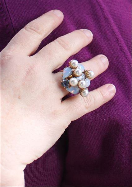 Outfit details: Dress – Ross, Cardigan – Ross, Tights – Forever 21, Shoes – Dirty Laundry, Belt – Forever 21, Ring – Made by Me (Vintage Earring)