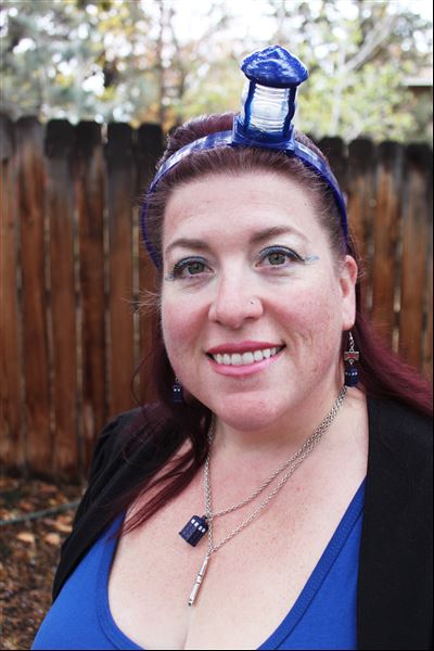 Most of my outfit came from Hot Topic – the dress, the head band (which lights up!), the earrings and the necklaces. Boots and shrug from Ross and the petticoat from Domino Dollhouse.
