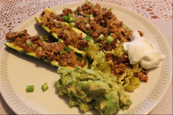 Another easy, healthy meal is zucchini boats – you can mix it up with different styles – Italian, cheeseburger, Chinese – so many choices. I made Mexican this time.