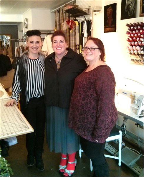 My sister and I are both big fans of Project Runway – we always have a text or phone conversation about each episode after it airs. In Season 11, we were both rooting for Michelle Lesniak and were thrilled when she won. She’s a native Portland girl and when I found out when and where we would be for our getaway, I took a chance and contacted Michelle to see if she had an open studio or shop that we could visit. She doesn’t yet have an open studio, but she’s working on it. However, she was so kind to get back to me and invite us to come for a visit. I wanted to surprise my sister, so I just gave her the address and met her there.