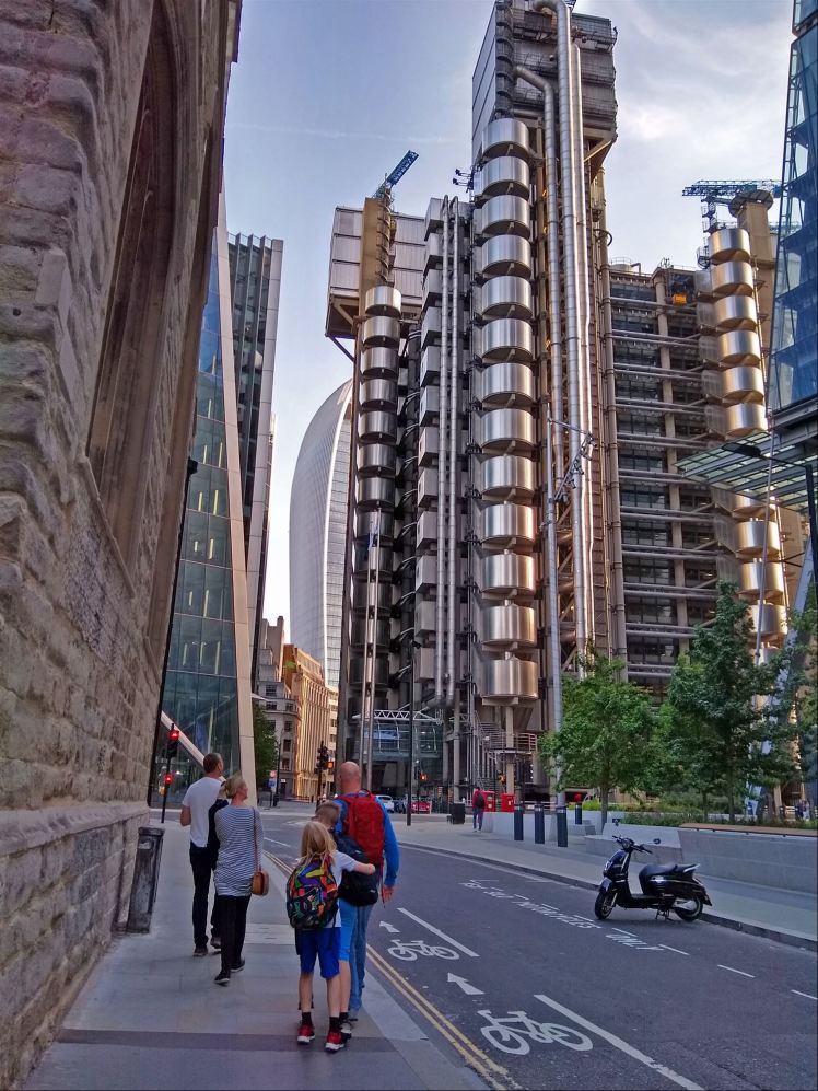 After we said goodbye to our friends, we still had a few things on the list for the day and they were all pretty close. We had a look at the Gherkin, which used to stand out so much, but is more understated now that there are more buildings around it, it’s still a great building though. We went to Leadenhall Market and found some cool art. Graeme was following the cricket and keeping us updated on the results.
