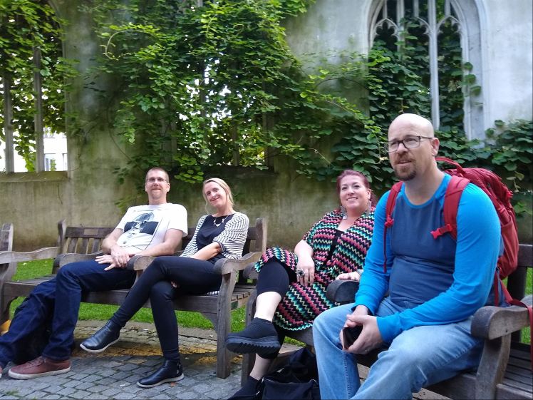 Then we wandered through The City towards St Dunstan-in-the-East. The City on a Sunday evening is perfect to see the sights, and enjoy the architecture and art as there are no crowds. St Dunstan was one of my Pinterest finds and it did not disappoint. It’s a garden inside the ruins of an old church. We had it to ourselves for most of the time we were there and it closed right after we left. It was a bit magical.