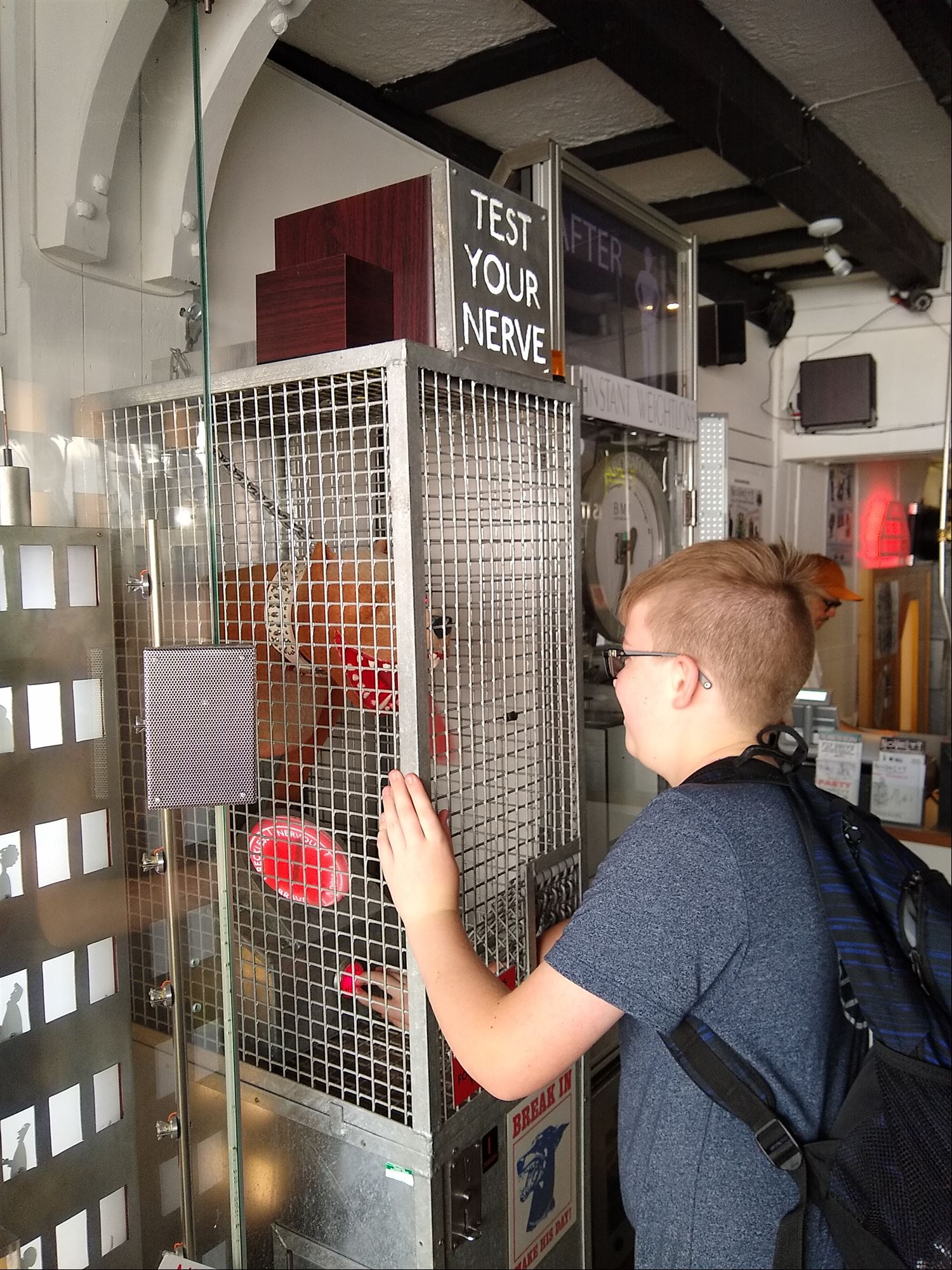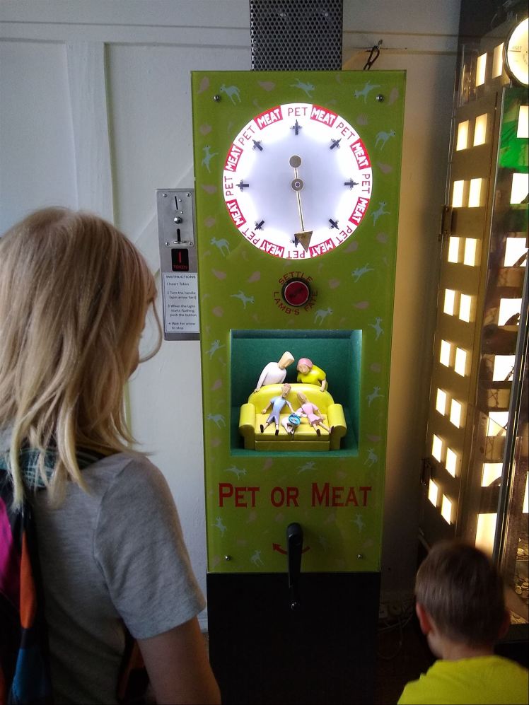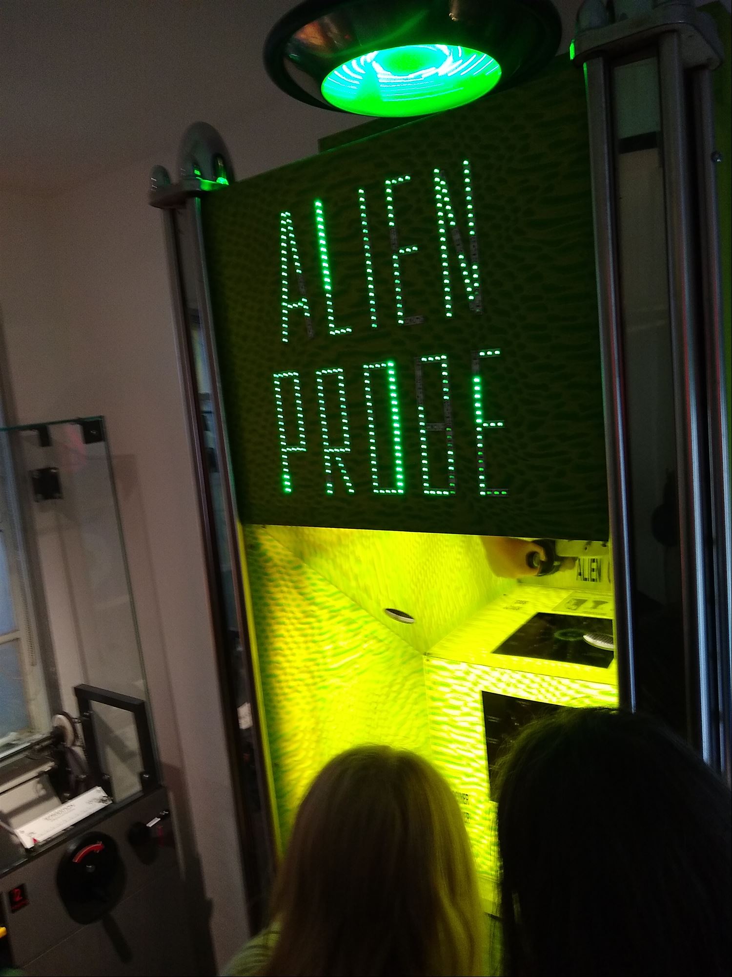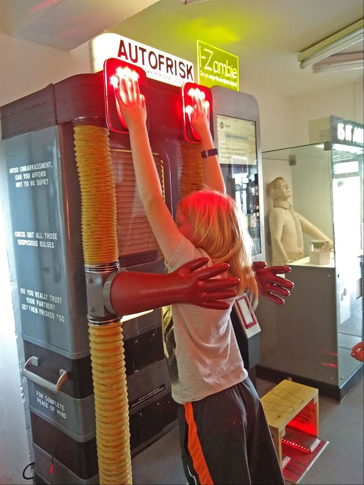 Then we were off to Novelty Automation which was a collection of quirky home-made mechanical arcade machines that included an Alien Probe, i-Zombie, Instant Eclipse, Instant Weight Loss, A Micro Holiday, Pet or Meat and many others. We spent quite a bit of time here trying all the machines and everyone getting a turn to do different machines, thanks to the NZ Blacketts buying lots of tokens. Zane did the Auto Frisk and Alien Probe and both times got a bit of a surprise! They were a bit over-familiar!