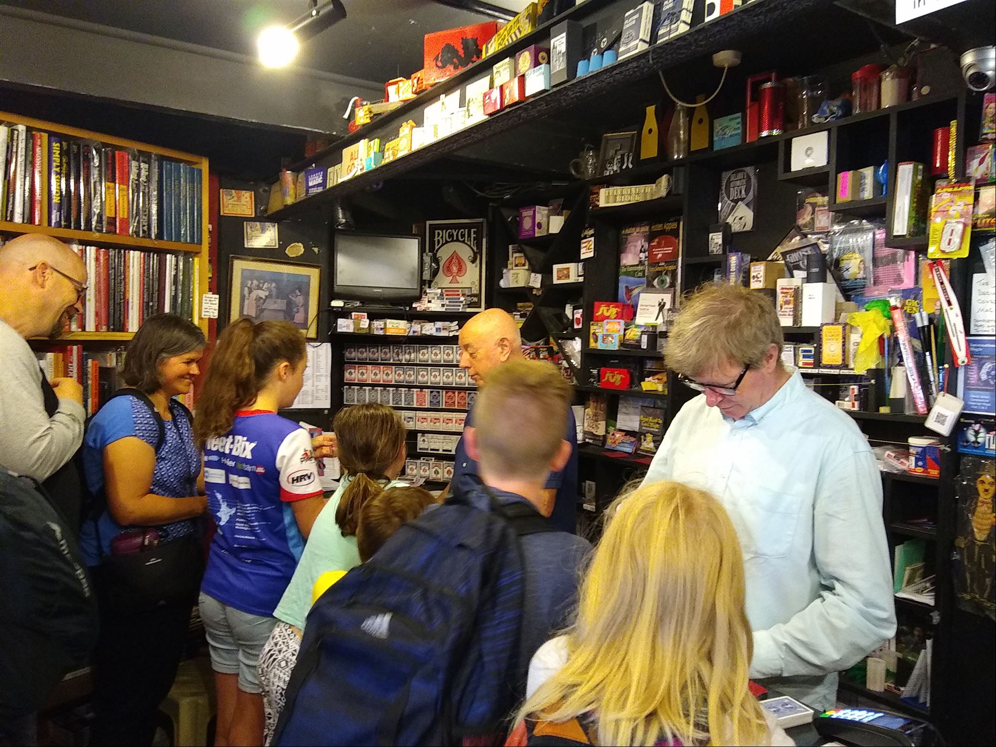 We carried on the International Magic Shop. It’s a small store front and for most of the time we were there, we were the only customers. The shop keepers spent a lot of time with us showing us different tricks and when we finally made our decisions on what to buy, they took the time to explain the tricks and show the kids how to do them. It’s amazing and I have to say, a little disappointing to learn some of the secrets – there are often no secret trap doors or “magic”, it often is just slight of hand or cleverly disguised tricks. That’s not to say it’s not really, really cool, but when you’ve been blown away by a trick and then discover it’s simple secrets, it’s an odd feeling. Nonetheless, this was a very cool stop and we love all the tricks we got.
