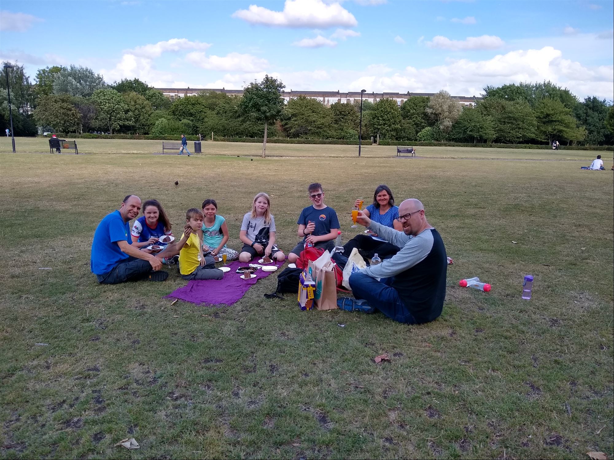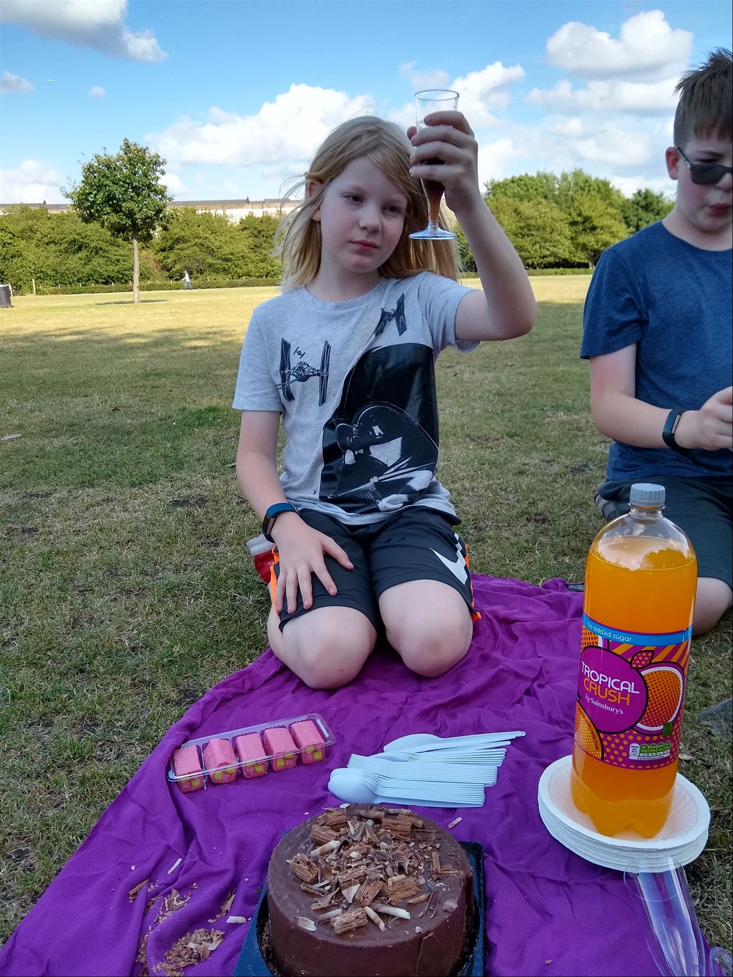We headed to Whitechapel and I went to the supermarket while everyone else headed to Weaver’s Field so the kids could run around and play. I bought a Flake cake which Zane had seen earlier in the week and requested for his birthday cake. I also got some soda including some Dandelion and Burdock and some plastic champagne flutes.