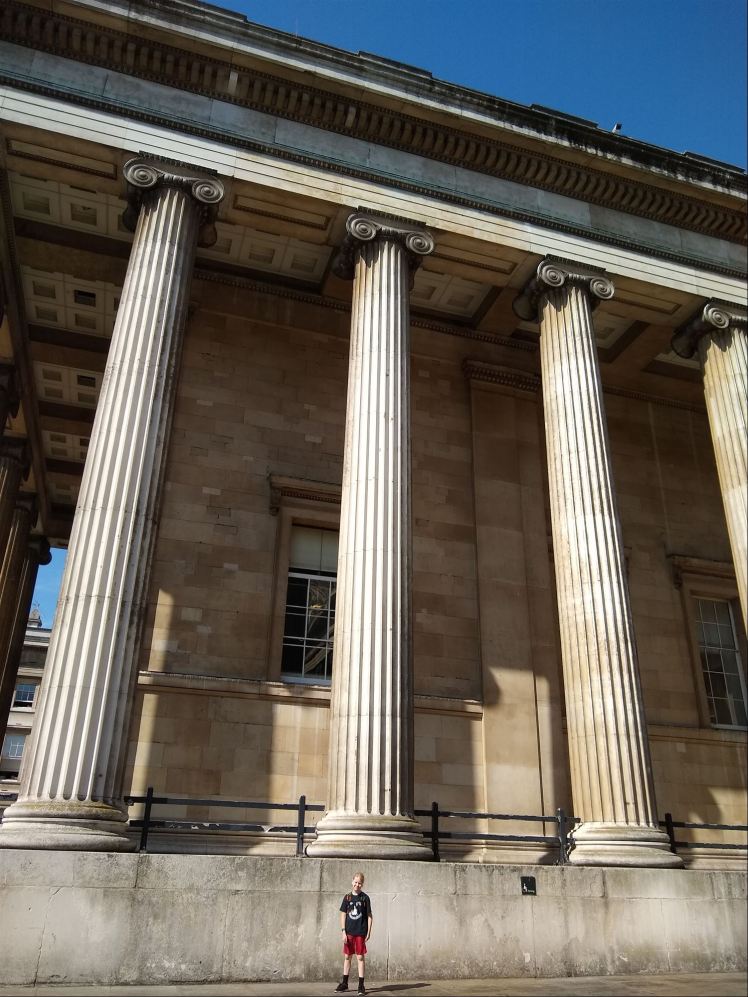 We went to the British Museum and met up with our friends Jamys and Emma who are both English, but who we met in New Zealand. The NZ Blacketts joined us and we headed inside. The British Museum is one of my favourites and is just so overwhelmingly filled with artifacts and pieces of history – things you read about in books and see in movies. There’s so much to take in. There’s no way to see it all in one go, but I do love to take the time to look at pieces and read the information about them. There’s so much to learn. We looked at some of the Egyptian, Roman, and Assyrian stuff. I love seeing things from Biblical times, showing events that happened in the Bible. It was so good to go through with Jamys and Emma as they are both scholarly and are into the historical stuff.