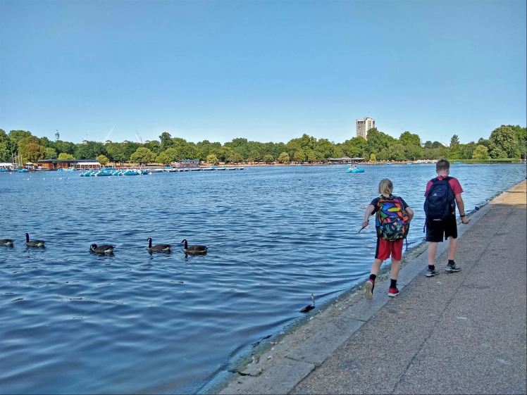 Then we took a long walk through Hyde Park past the Serpentine which was super busy on such a hot day – many people out on the water and in the park. The Serpentine was another thing that had to be cut from my list, so it was good to add it back in.