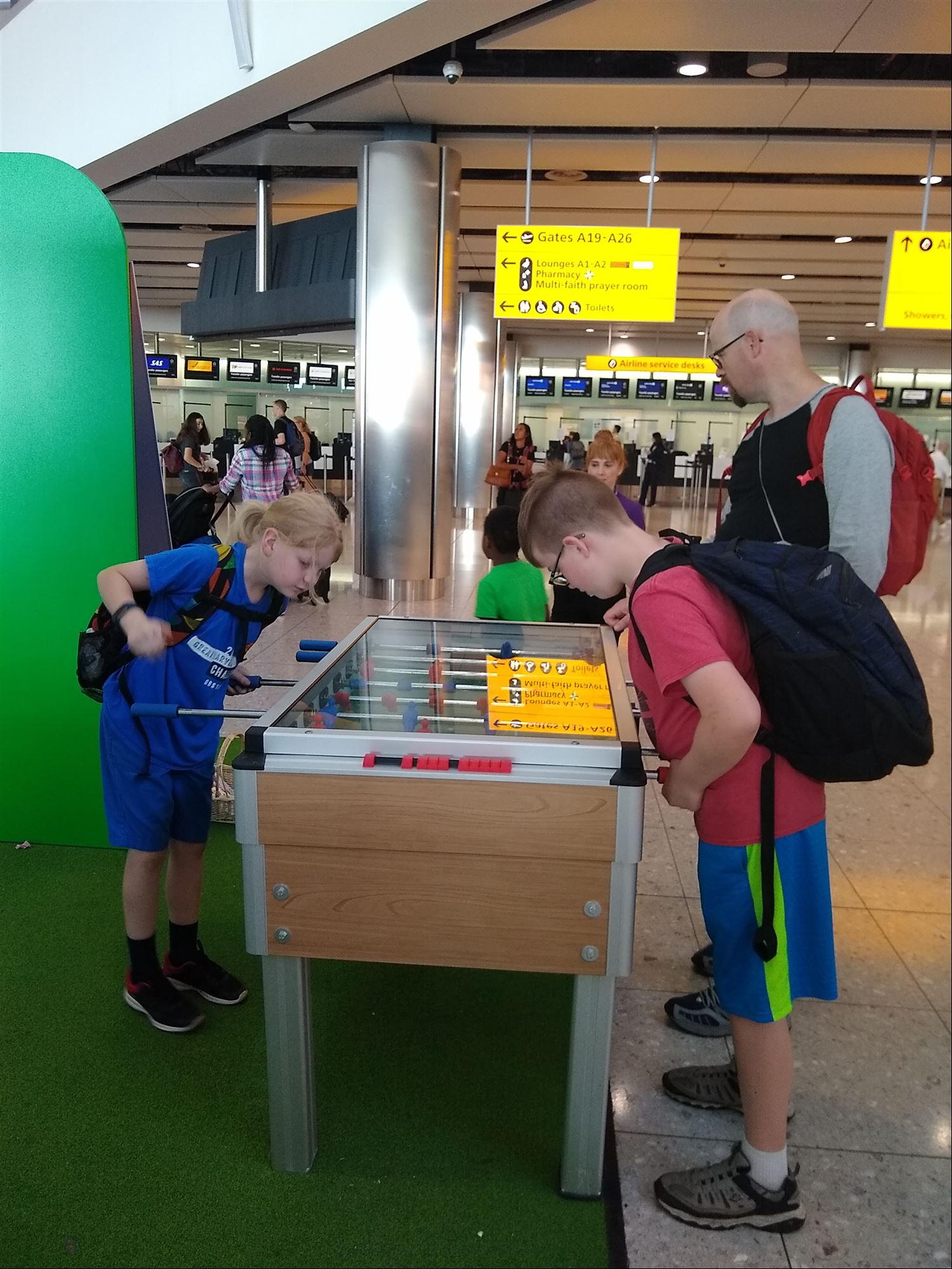 At Heathrow, we returned our Oyster cards and headed into the airport. We had an uneventful check in and went into the gate area. We still had a few pounds to spend so got one final meal deal for the boys, bought a magazine and a couple of souvenirs. Becky called and we had a final chat before we left. She’s a quality girl!