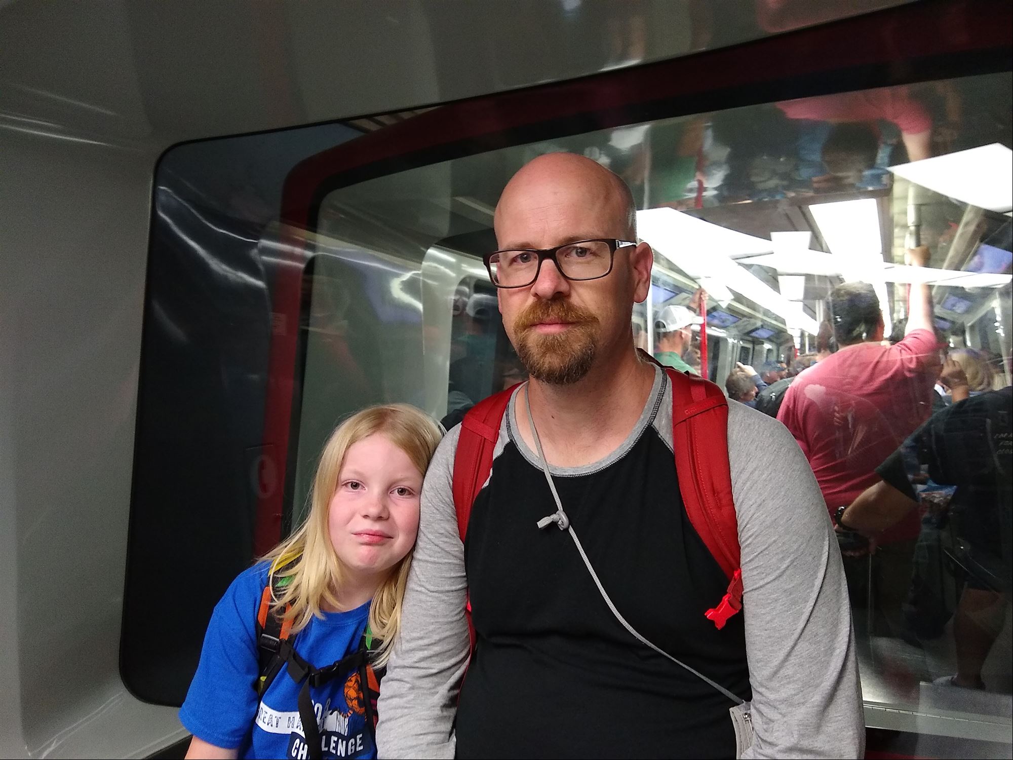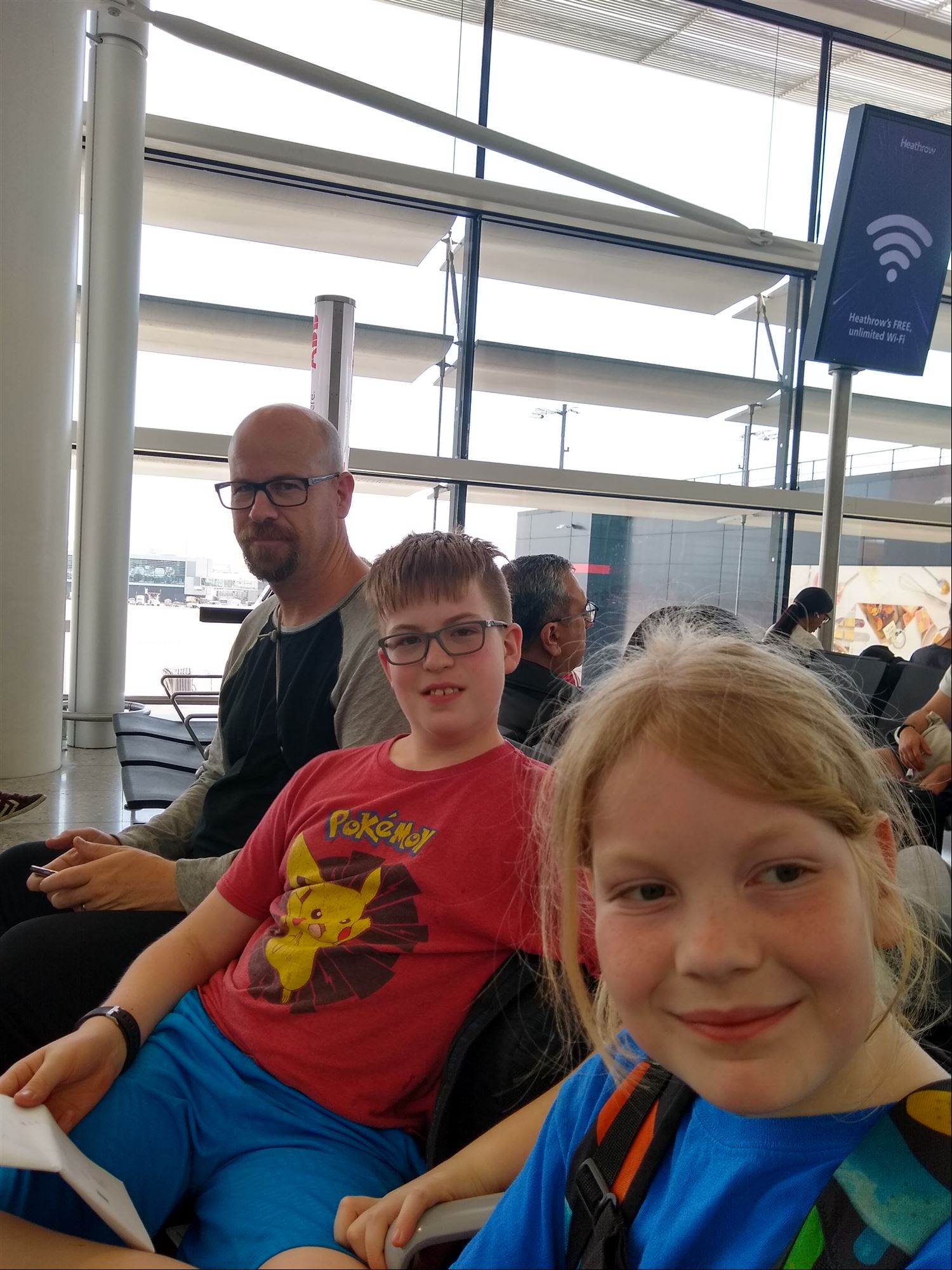 Once we got on the Picadilly line to Heathrow there was lots of room and we had seats the whole way. Colin and Jude got on a different carriage than Zane and I and Zane had fun talking to them through the window at the end of the carriage.