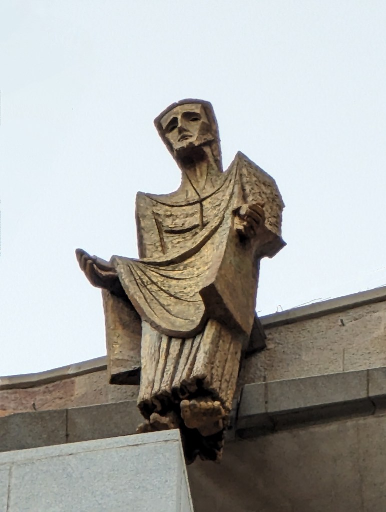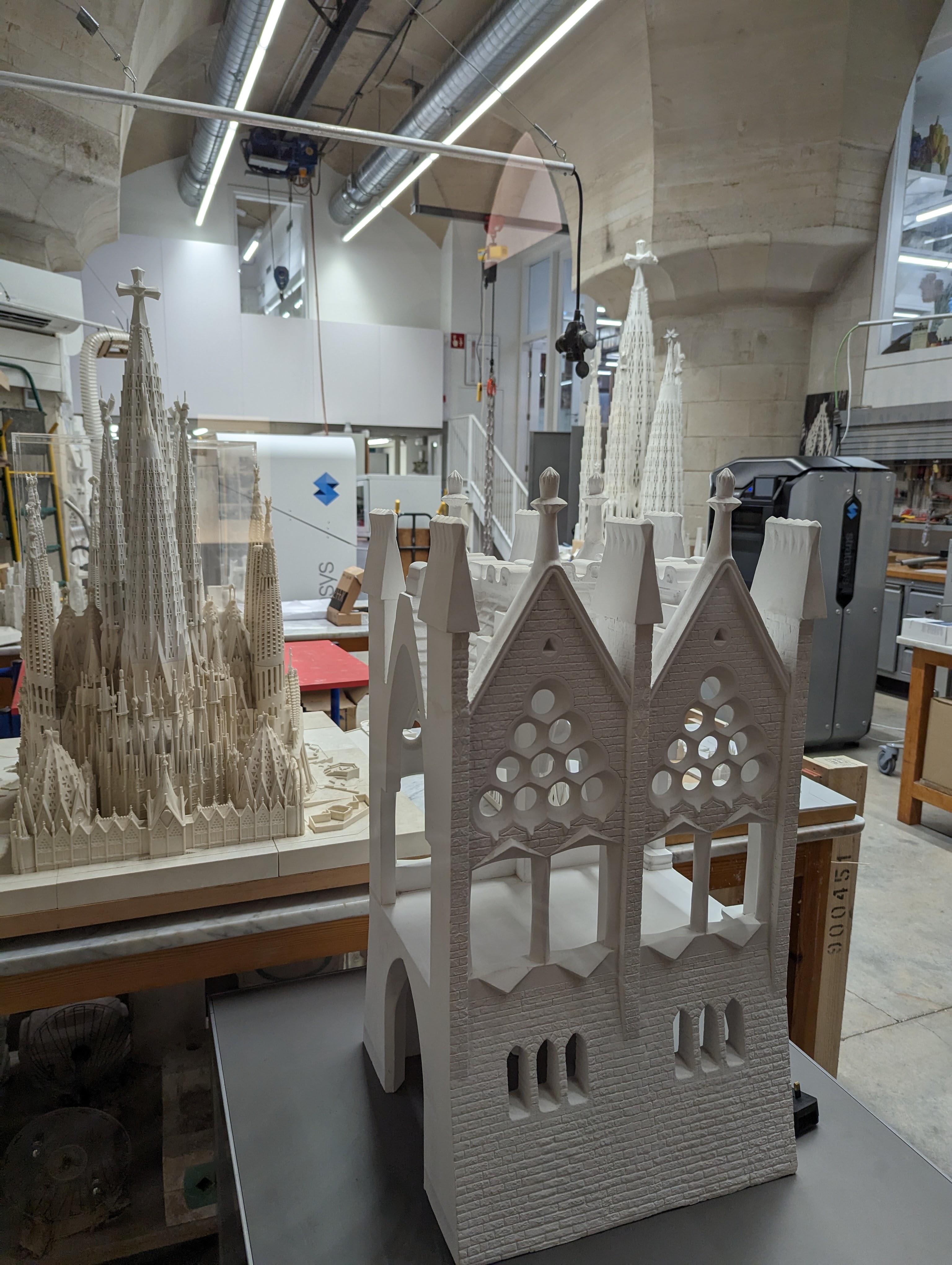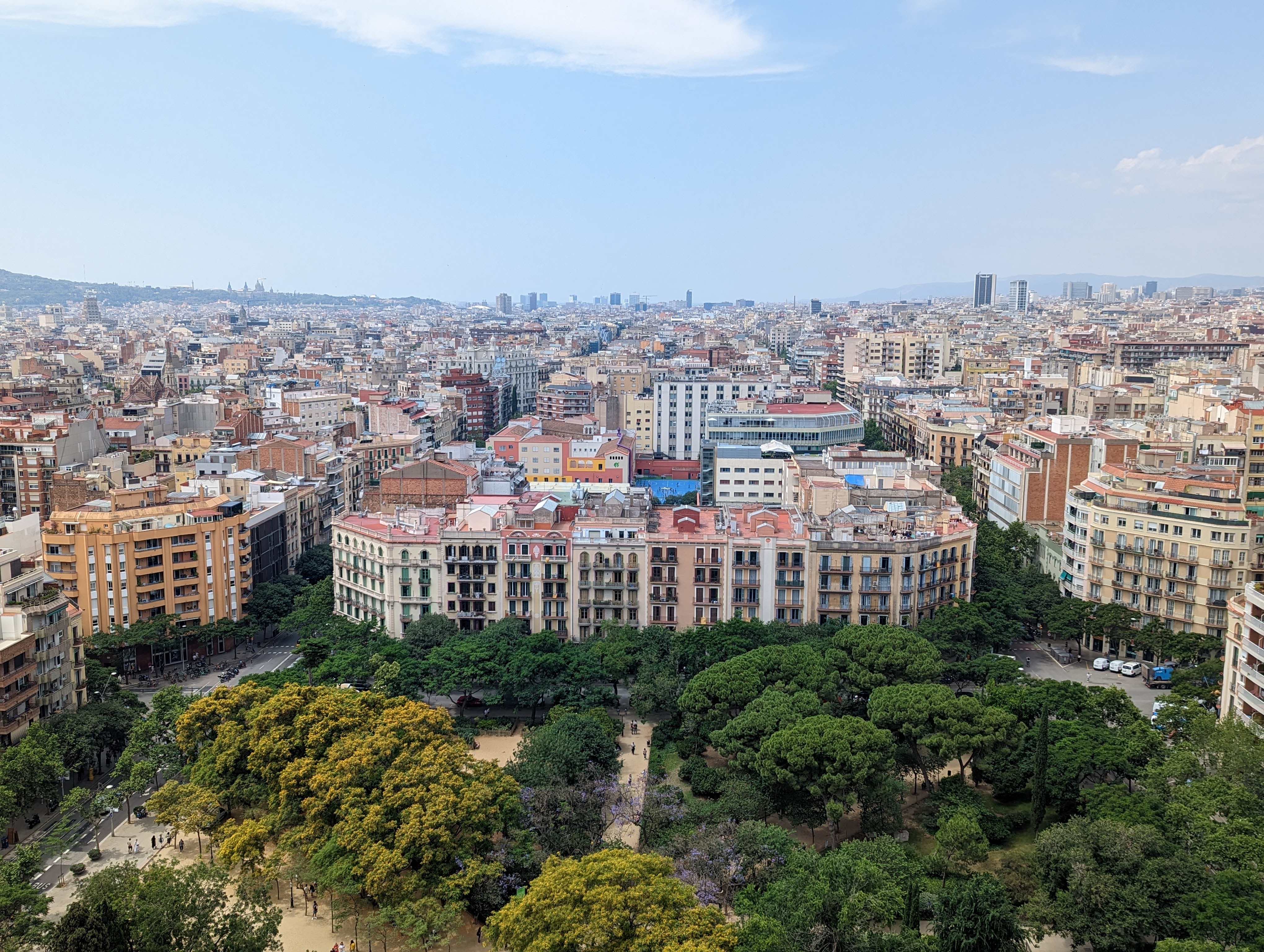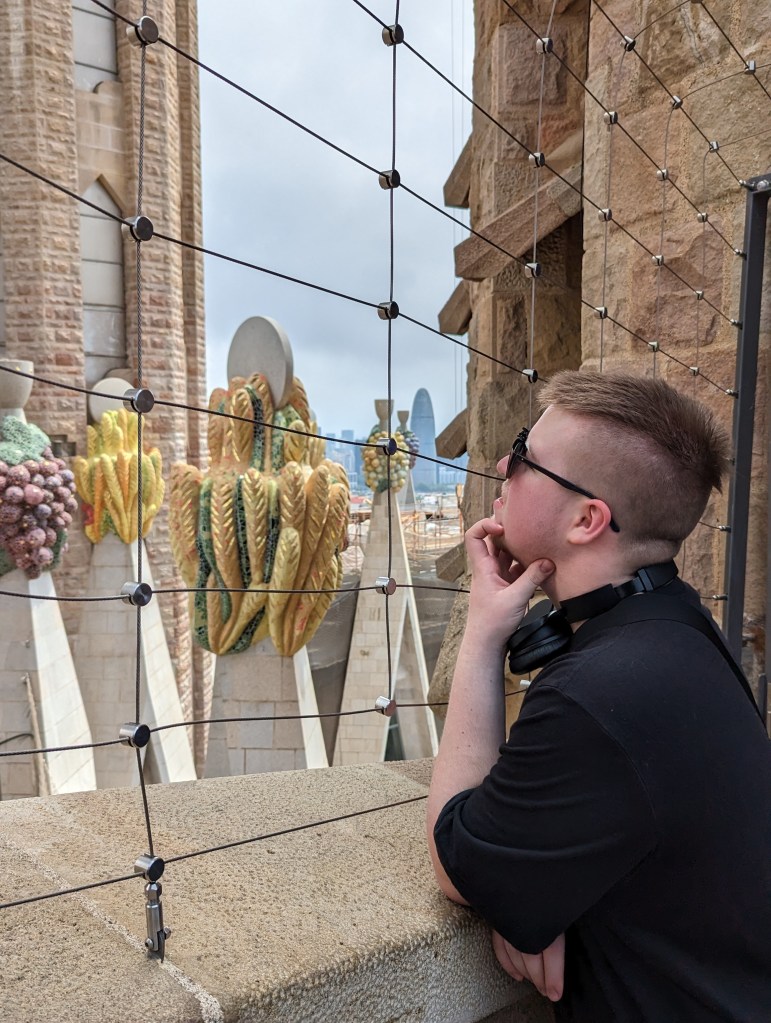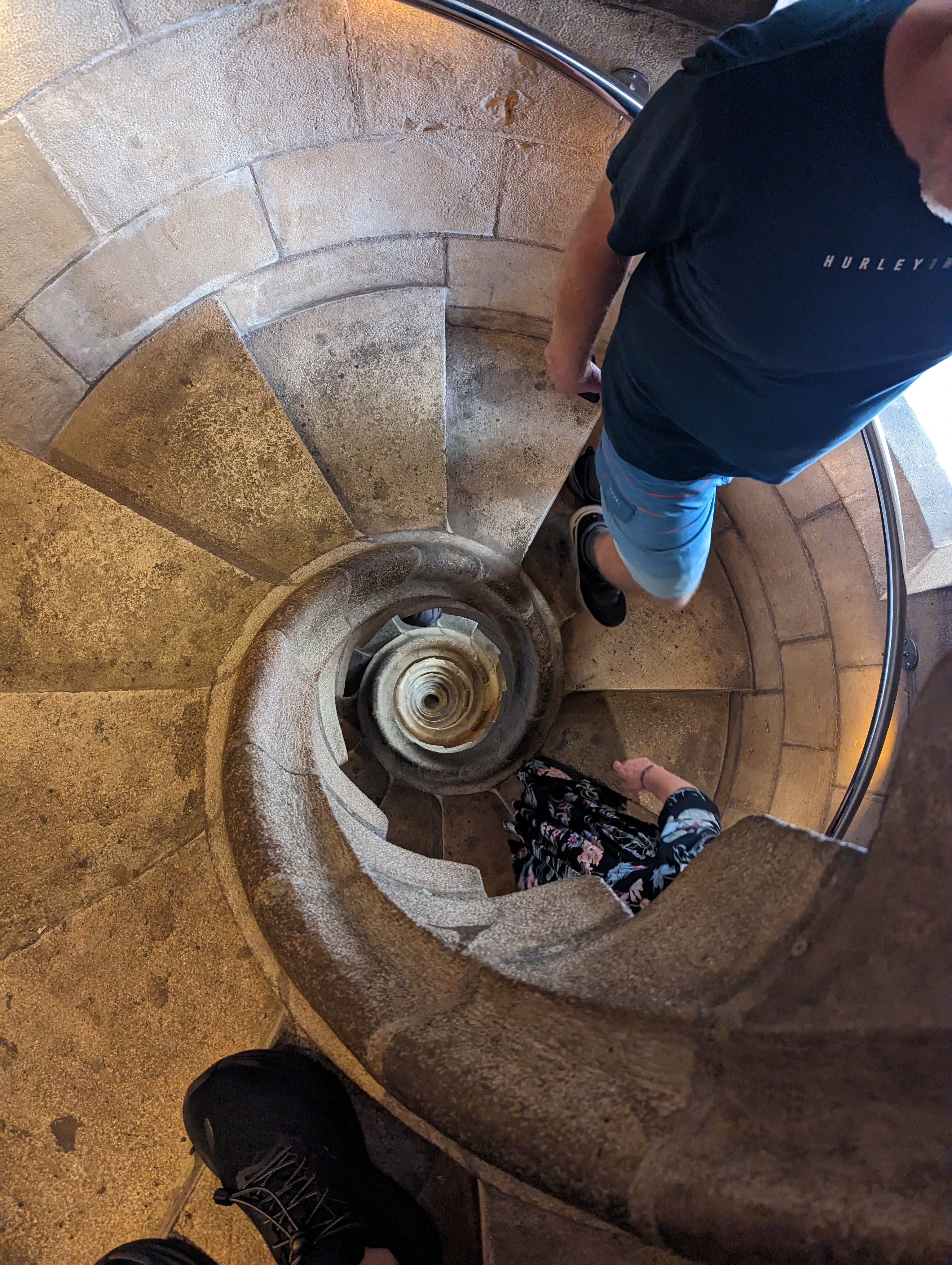 We took a break from our audio tour and got in line for going up the Passion Tower. We rode the elevator to the top (when Colin and I were here 25 years ago, we walked up). The views from the top were incredible, seeing the Towers up close, seeing the work still happening, seeing the City from above.
