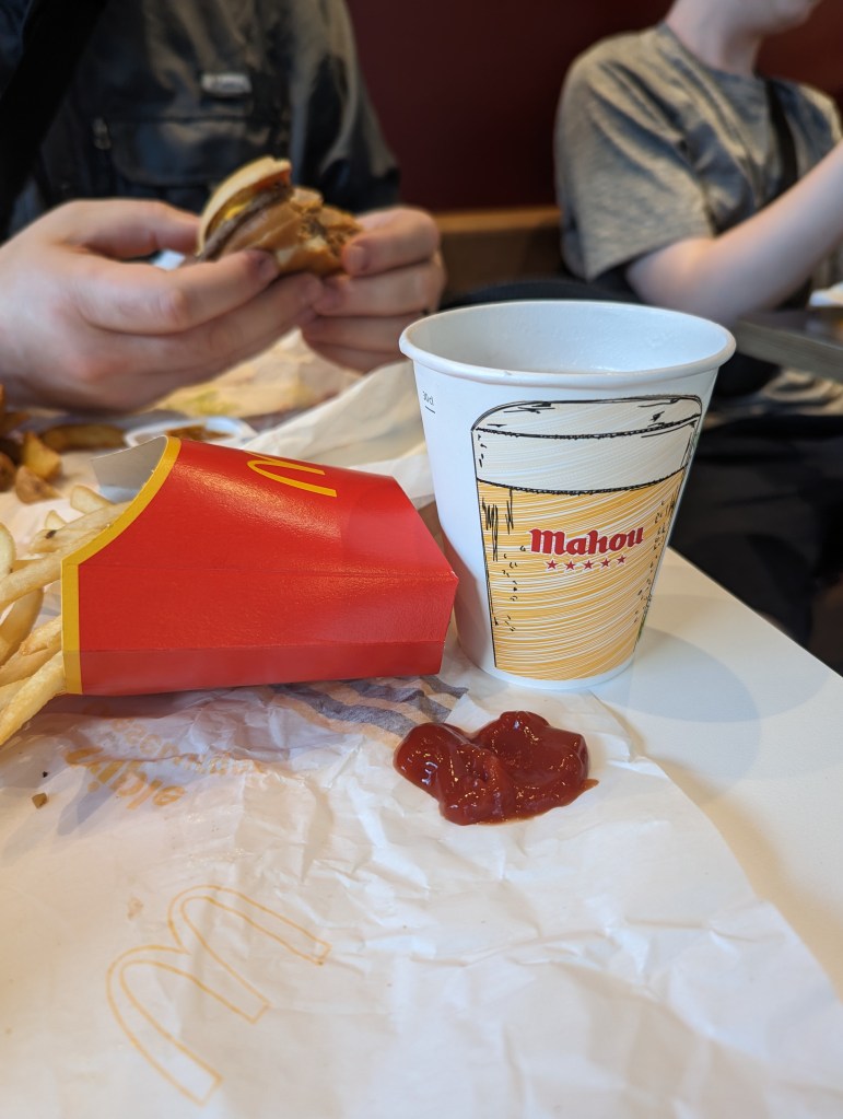 We all got ice cream treats at a shop and sat in a park for a bit before heading back to Westfield. We wanted to go to McDonalds to experience that in a foreign country. I got a beer with my meal for the same price as a soda. The food definitely tasted a bit different, but it was fun.