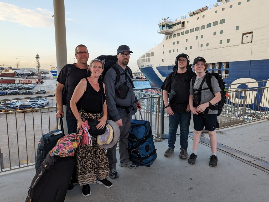 Went back to the hotel. Zane chatted to Amara for a while which was lovely. Used the internet to activate our Eurail passes and then headed out to get taxis to the Ferry Terminal. Colin and Graeme spent a lot of time and energy trying to figure out the cheapest and best way to get to the Terminal, turns out taxis were the way to go and we were so thankful to not have to lug our bags around on public transport and then have a huge walk to get to the terminal. .