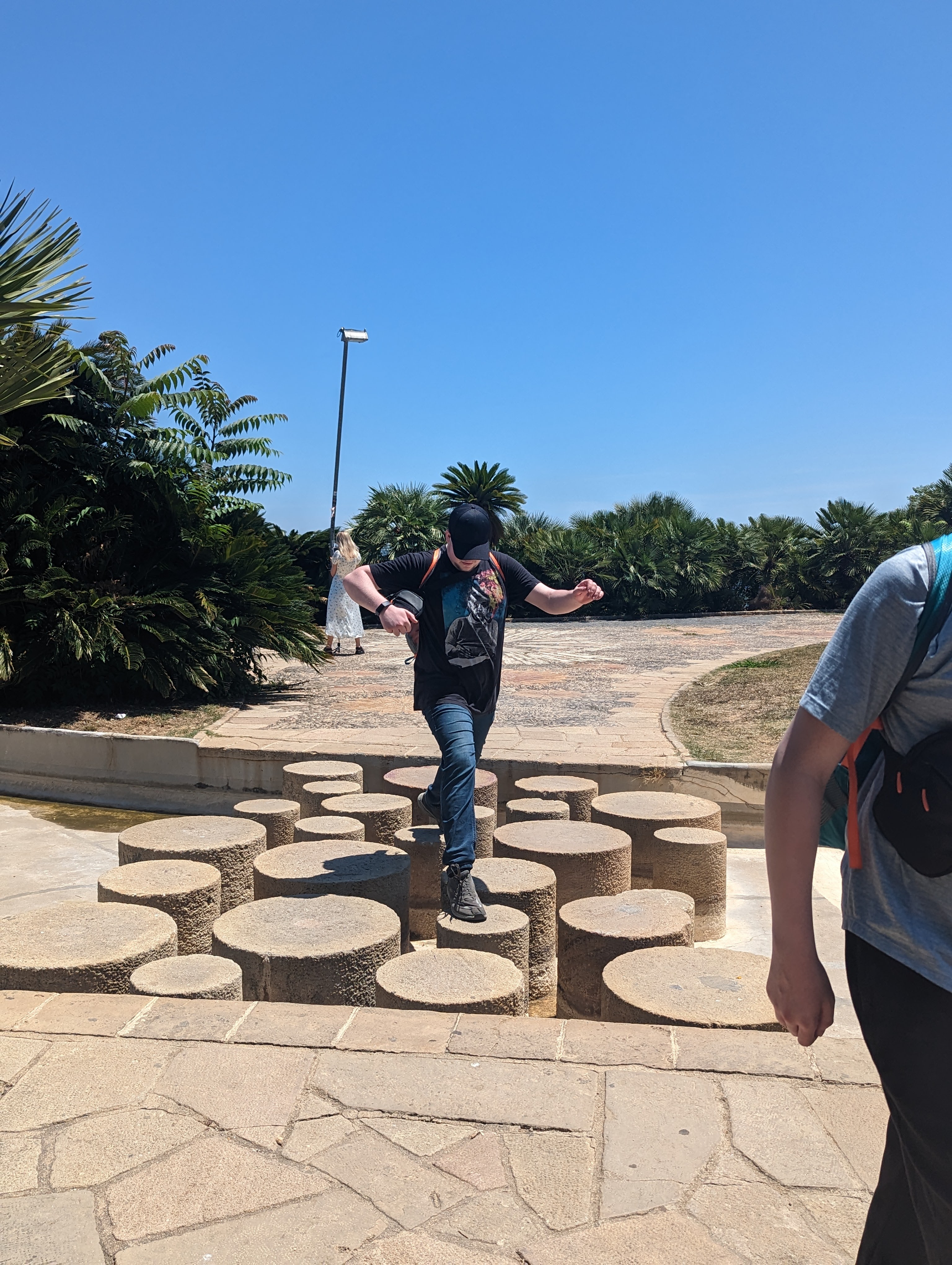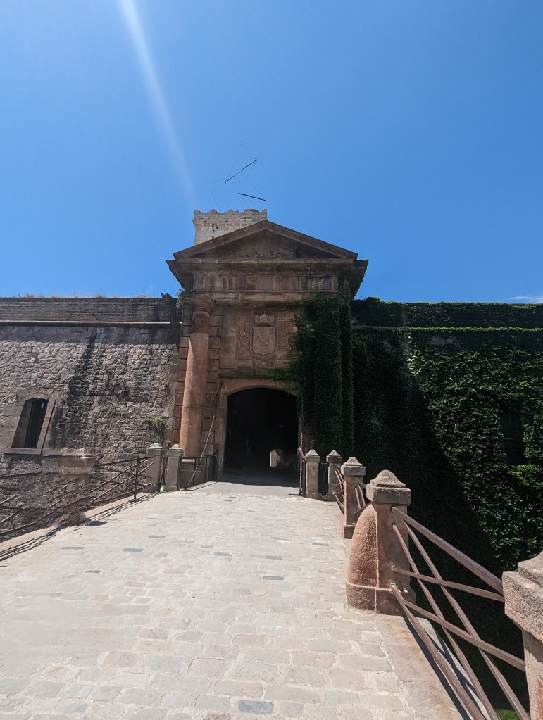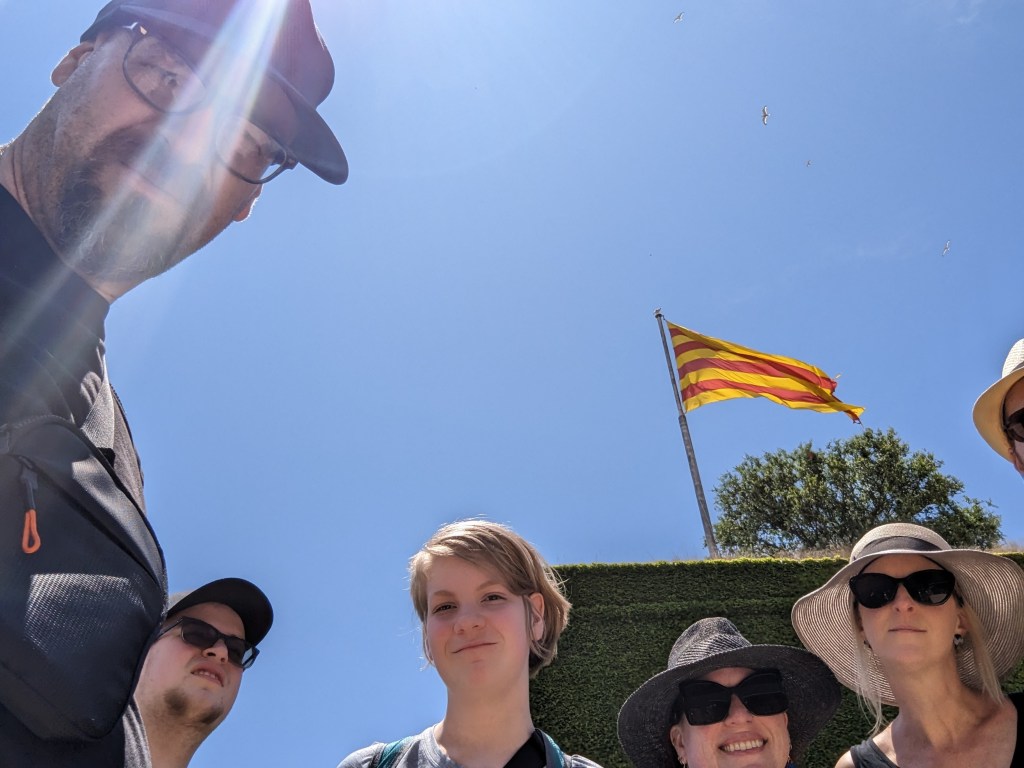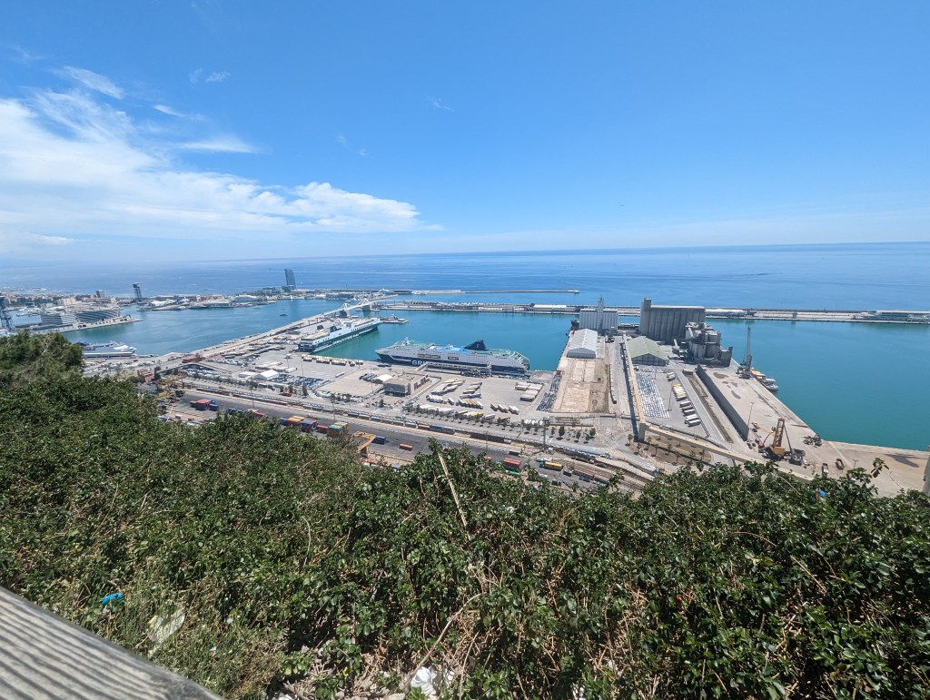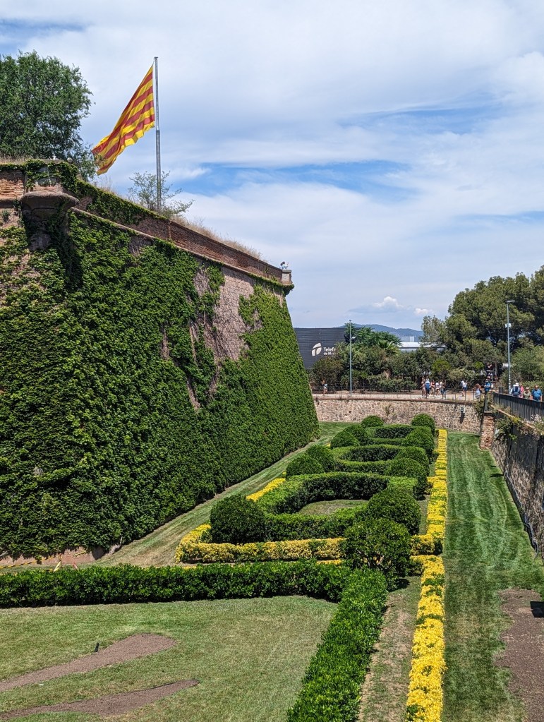 Wandered around the park and Montjuic Castle. The boys had a great time speculating on defenses since there were cannons, old and new, at the fortress. Saw our ferry in the port from on top of Montjuic..