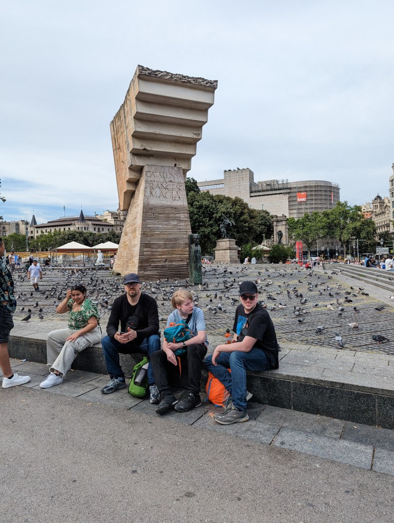 Made our way to Las Ramblas which is like Oxford street in London. Very touristy, but some interesting things to see. Found a square full of pigeons and Zane walked out into the middle of them. The LEGO store was a treat!
