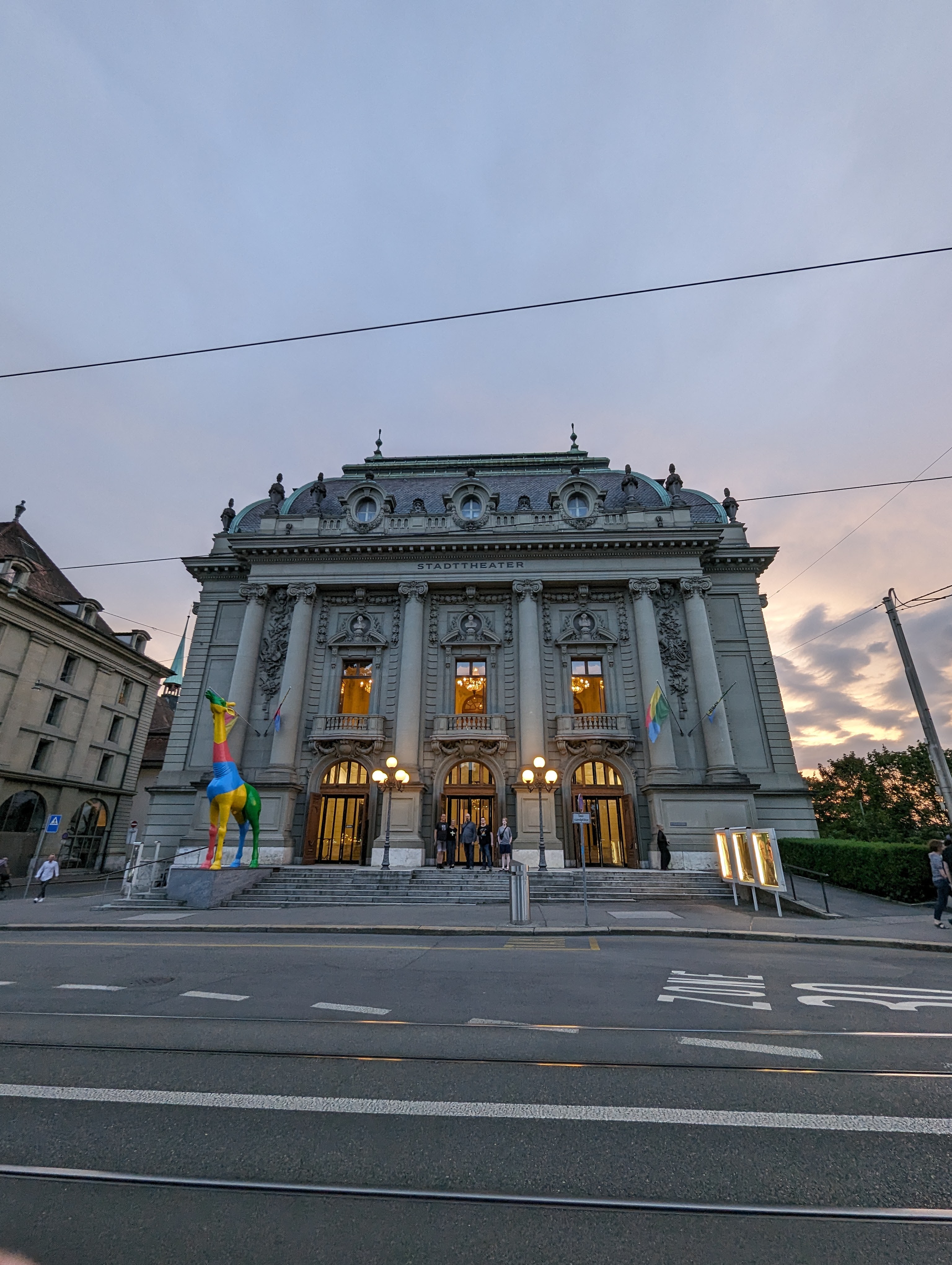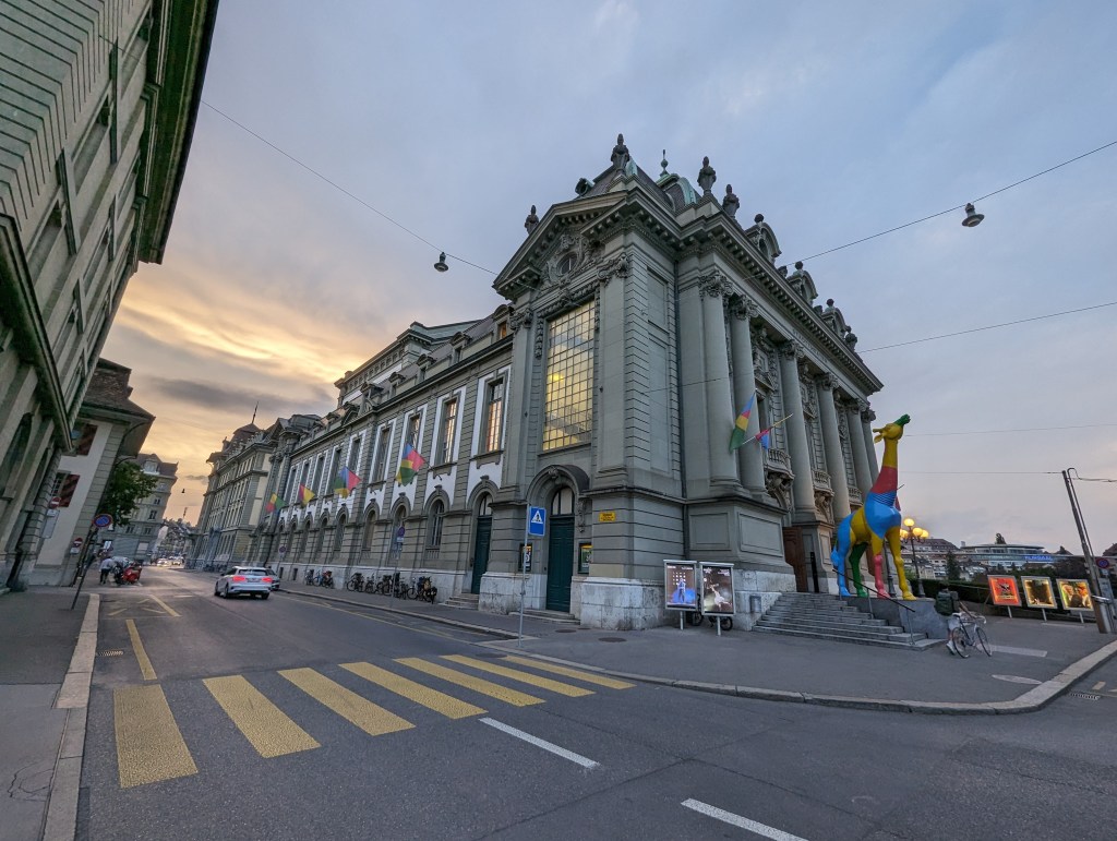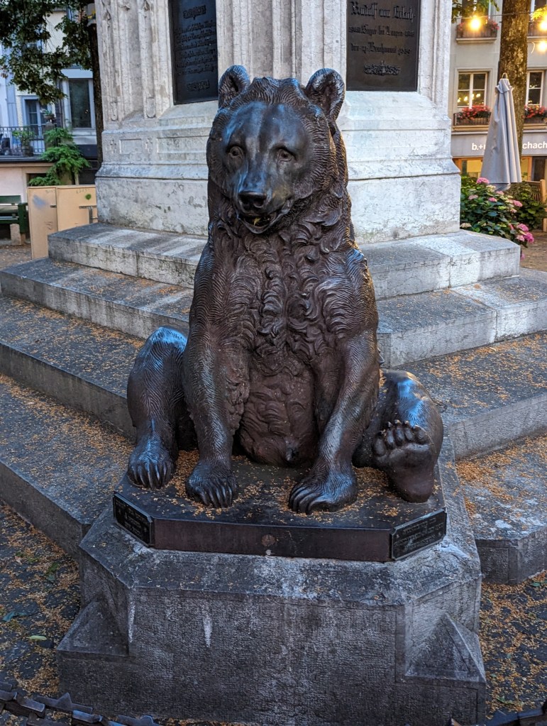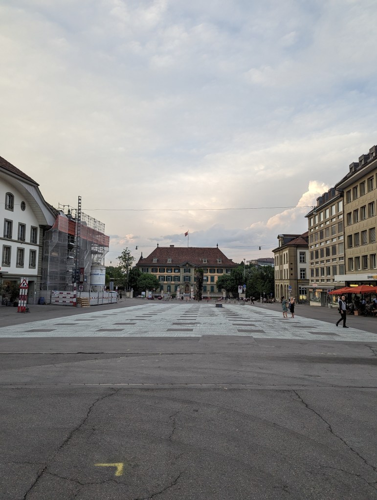 Then we headed off to explore a bit. Had a wander around Old Town, ended up on a bridge, Kornhausbrücke, at sunset. Such a beautiful city. It looks like a fairy tale. Lots of greenery. The River Aare is a beautiful turquoise blue/green. There are lots of fountains with lovely, drinkable water. Lots of strange statues that depict odd things – including a monster/man eating babies. There were flags everywhere – Swiss, Bern, The Canton, and many others. Everything is written in German which is kind of jarring when you’ve only really seen it in movies about Nazis. Combined, it was quite militant at times, overall though it was so lovely, ordered, great public transport (free for visitors), lots of parks and green spaces, people were very relaxed. After being in Mediterranean places, it was strange to be out in the evening and have all the shops closed. It also stayed light quite late.