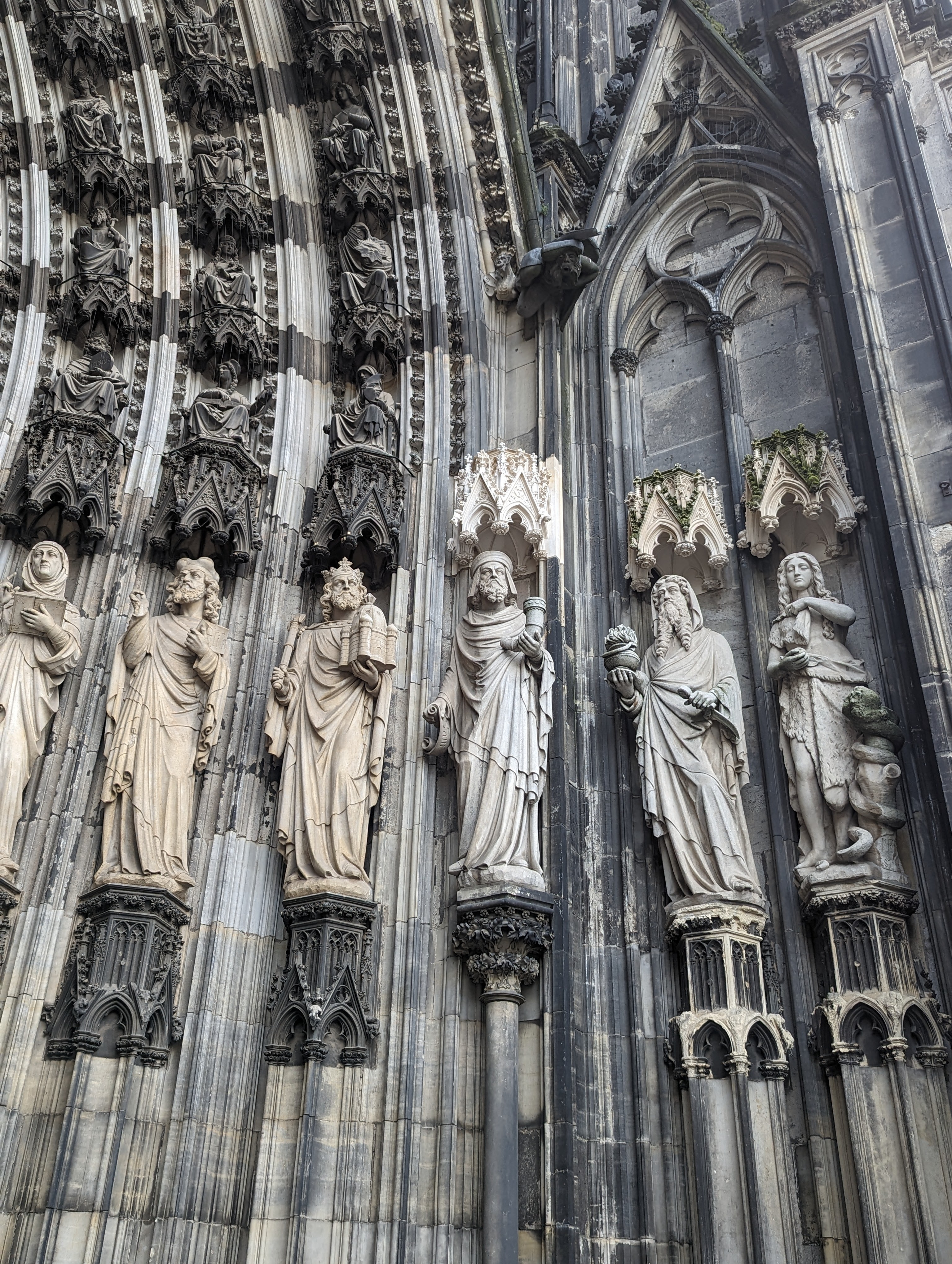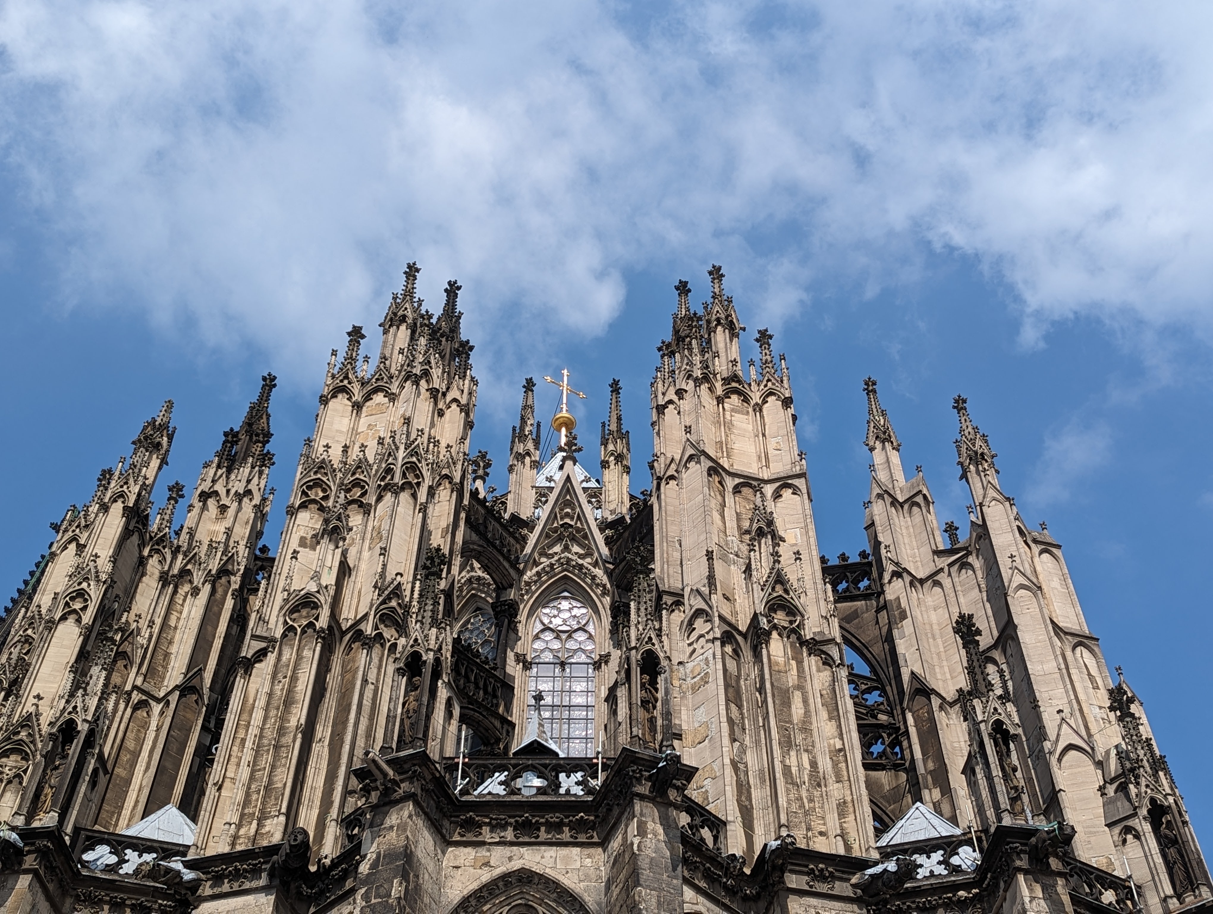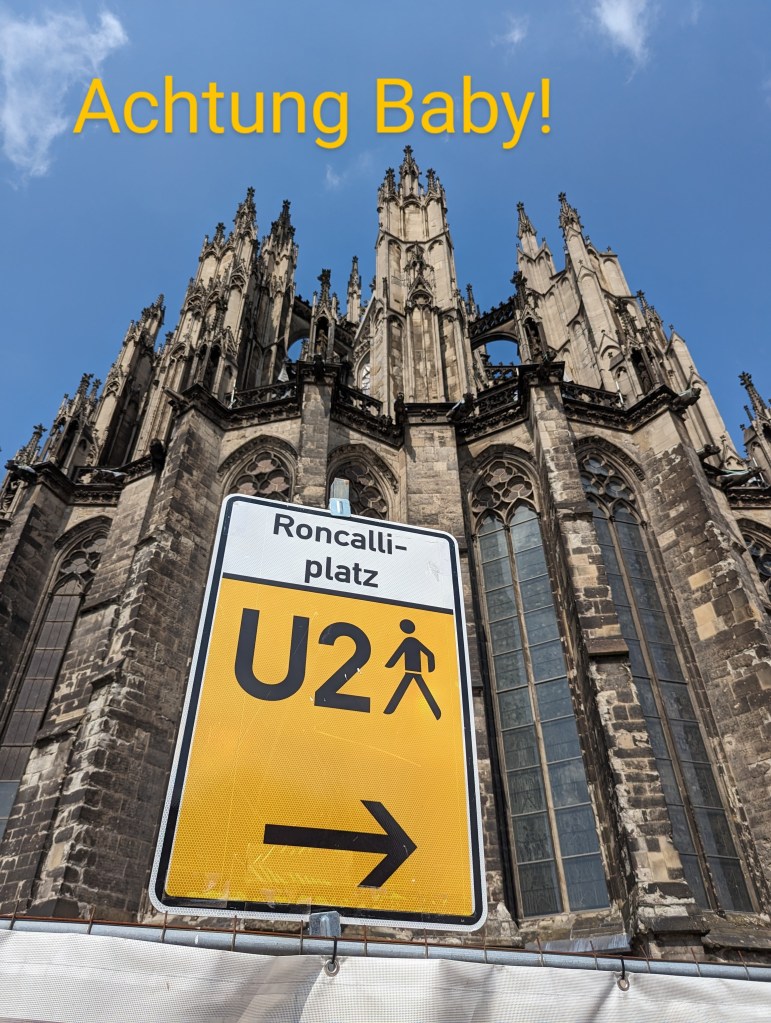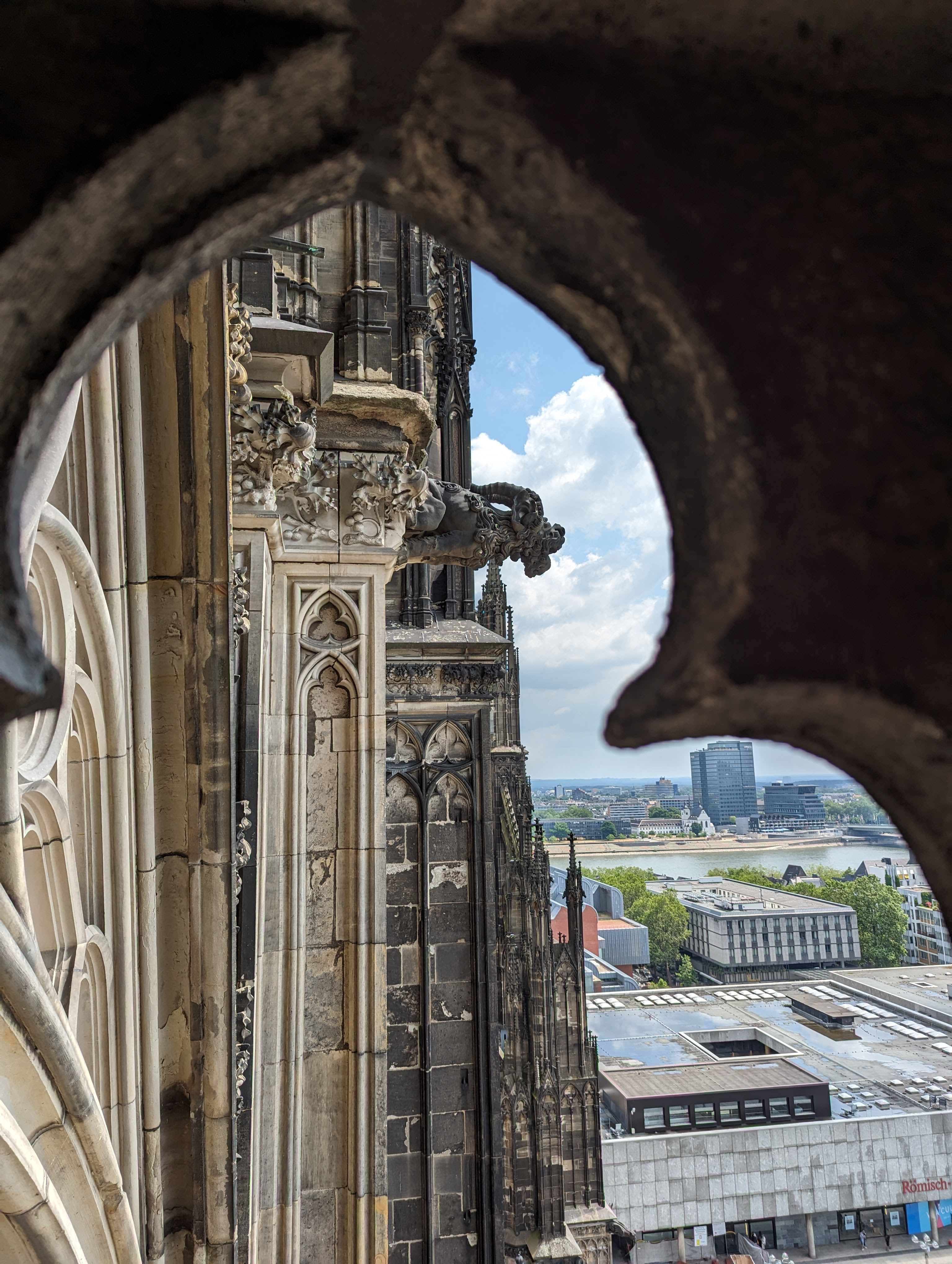 We got up and found a lovely coffee shop/bakery right outside. Fueled up with pastries and coffee, we headed to the Cathedral. We looked around the outside of the Cathedral for a while. A fine example of a Gothic cathedral with lots of flying buttresses and and elaborate sculptures and fun gargoyles. Before we went into the Cathedral, we went out onto the Hohenzollern Bridge, Hohenzollernbrücke. It is absolutely covered in locks of love. It’s a cool bridge too.