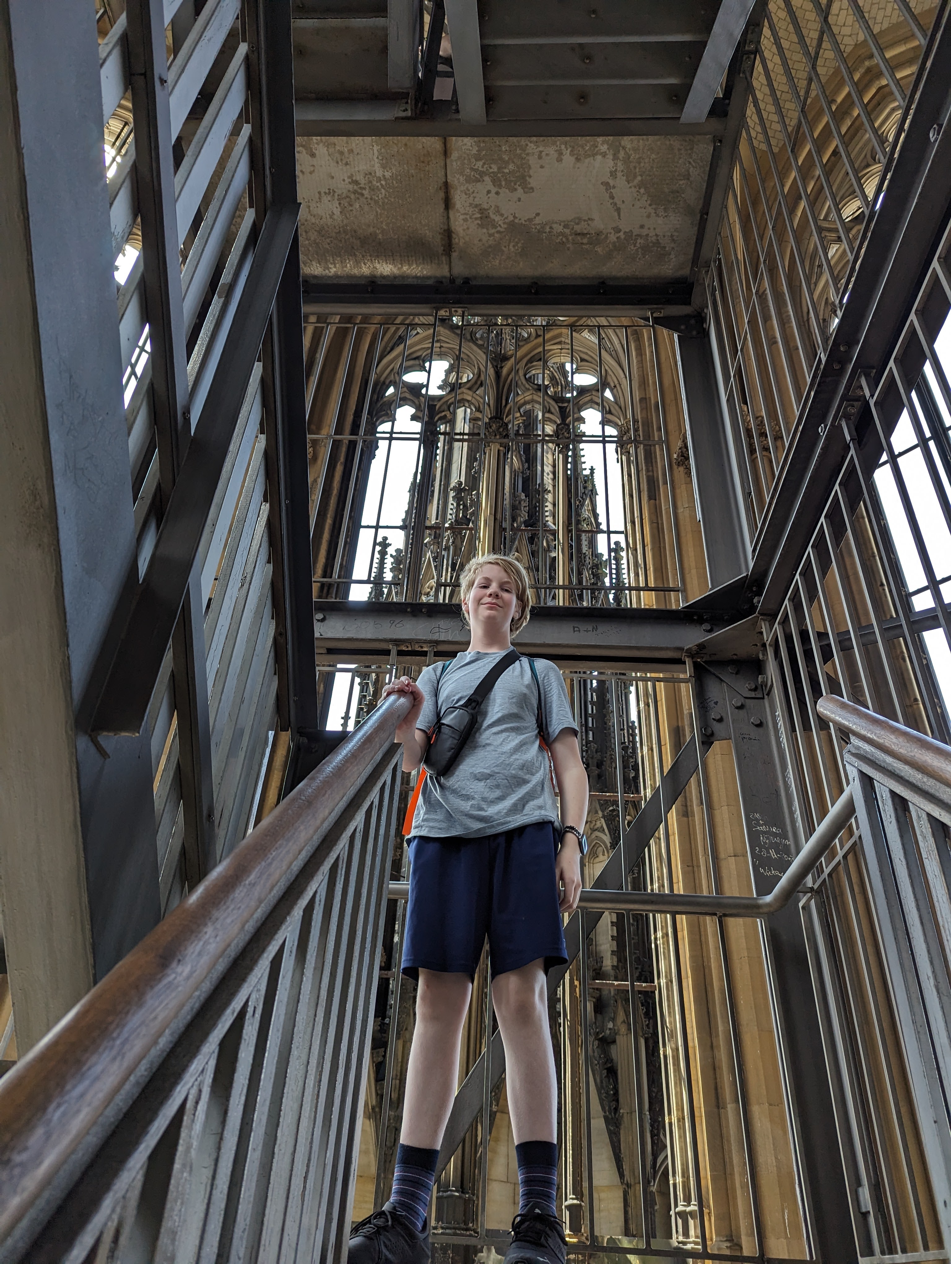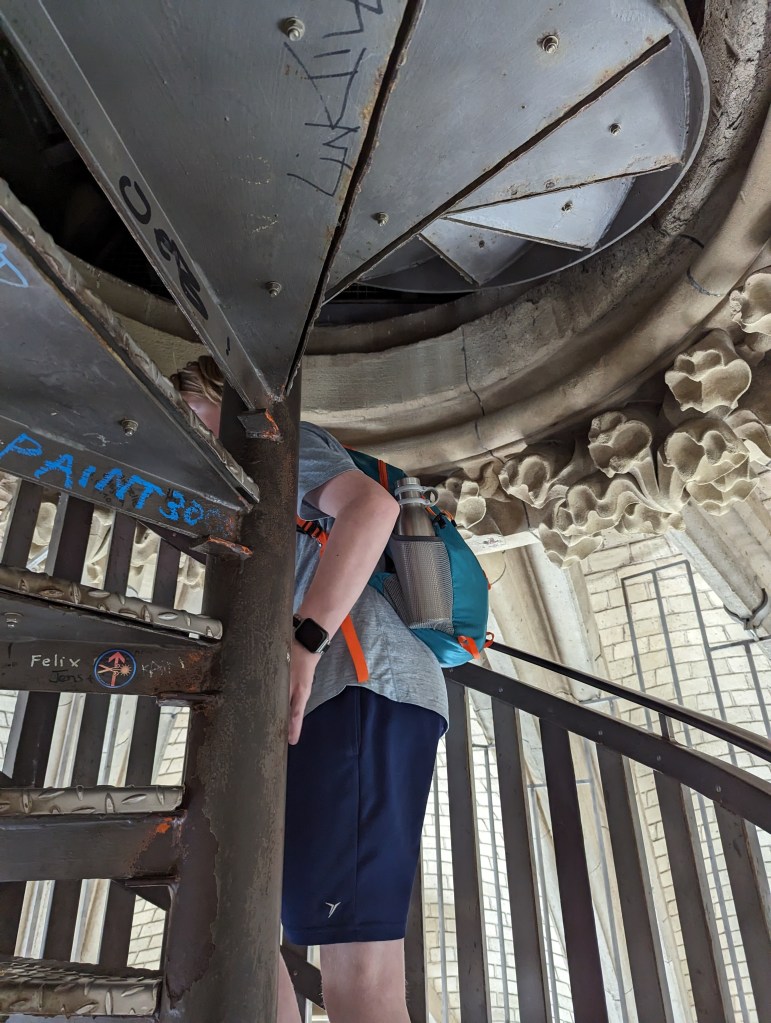 Graeme, the boys and I decided to pay to head up into the tower. 533 steps up! It was hot, hard work, but we made it and it was totally worth it. Great views, close ups of the Cathedral, we got to go to the bell room and hear one of the bells ring. We came back down and met up with Colin and Becky. Colin’s cold was getting better, but he still felt rough.