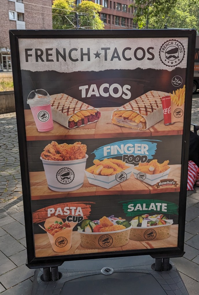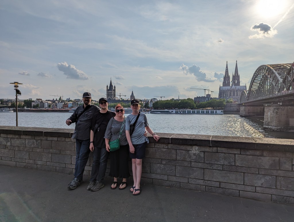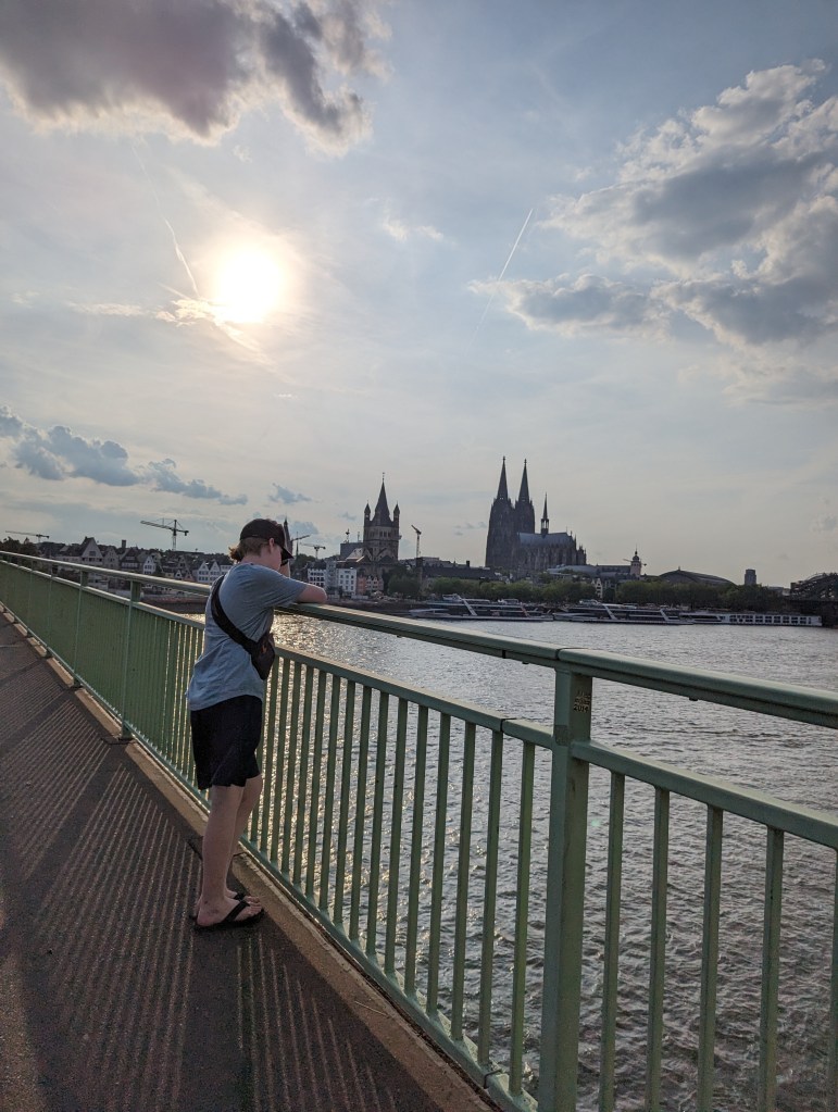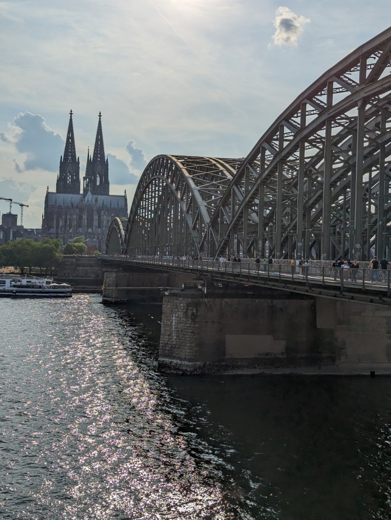 Feeling more energetic, we crossed the River on the Hohenzollern Bridge and got some lovely views of Cologne. We passed a Ukraine protest on another bridge, Deutzer Brücke. We got some beers and waffles and ice cream and sat by the river for a couple of hours. Just chatting. We also decided we better look into getting tickets for the Eiffel Tower and just managed to get some before they sold out. The evening was cool as we sat and talked. Dreaming about another trip together. Maybe Ireland, Scotland and Wales, or maybe Scandinavia. We also talked about Canada, but the distances make it difficult.