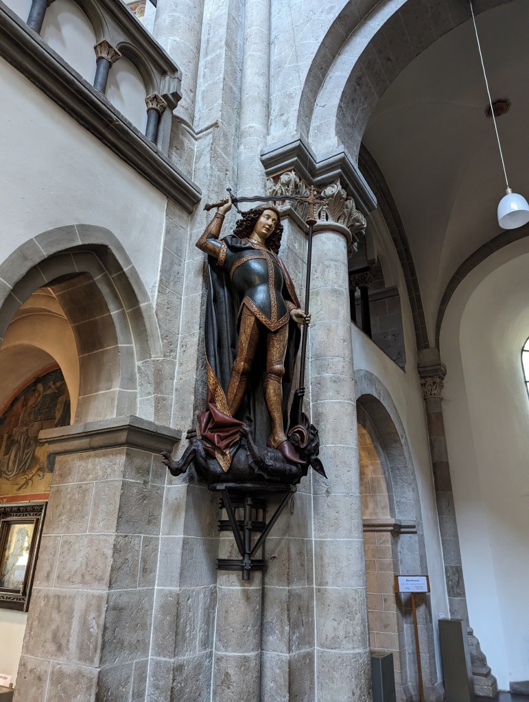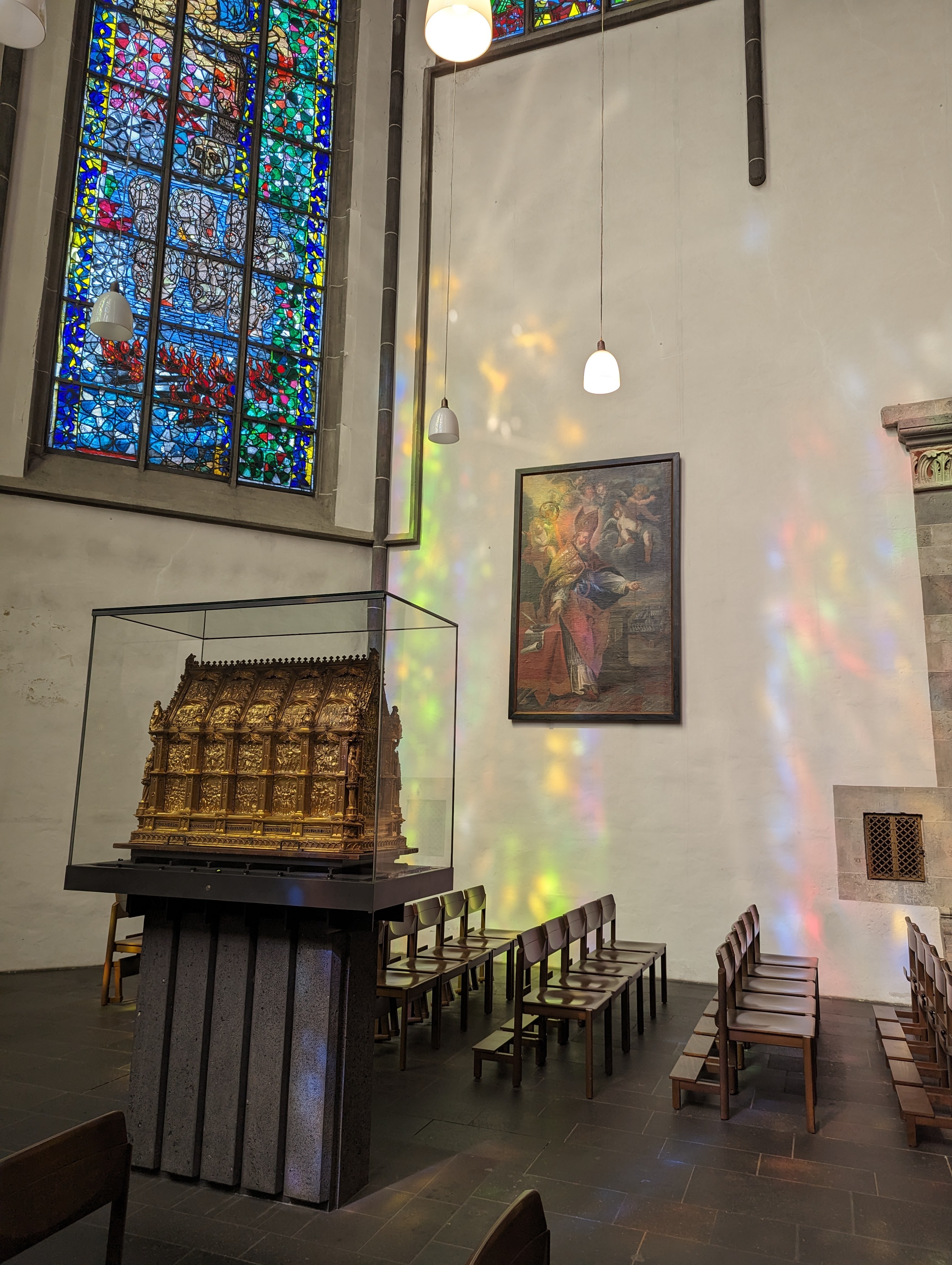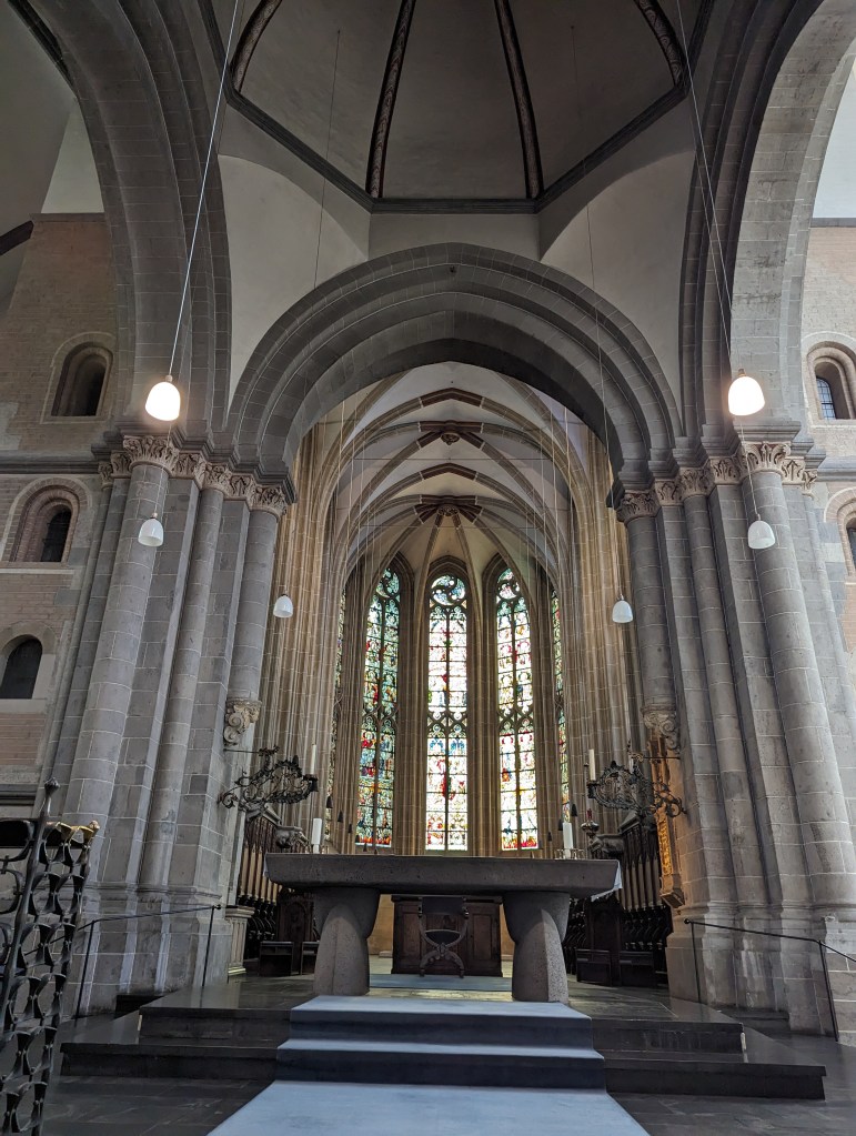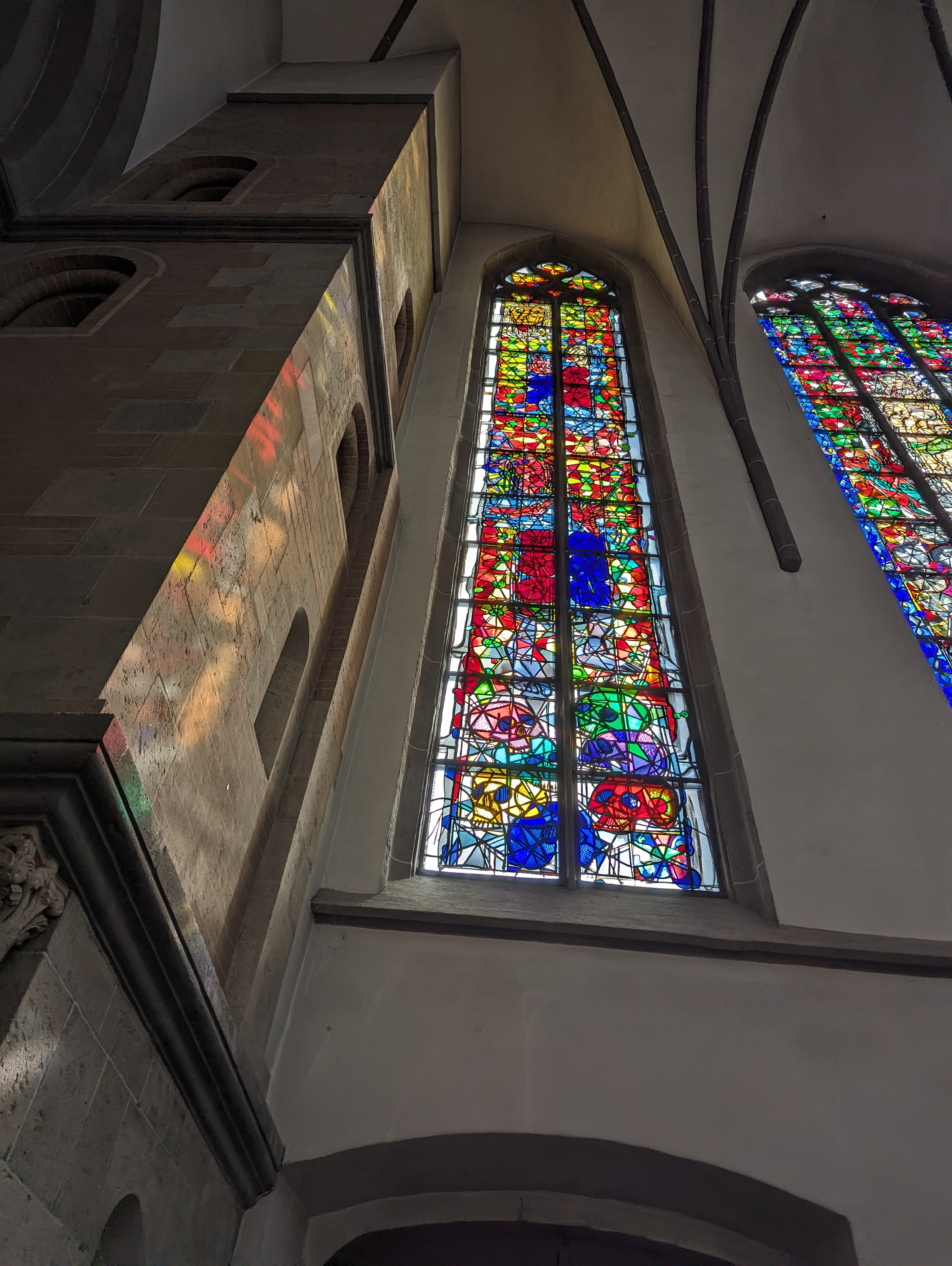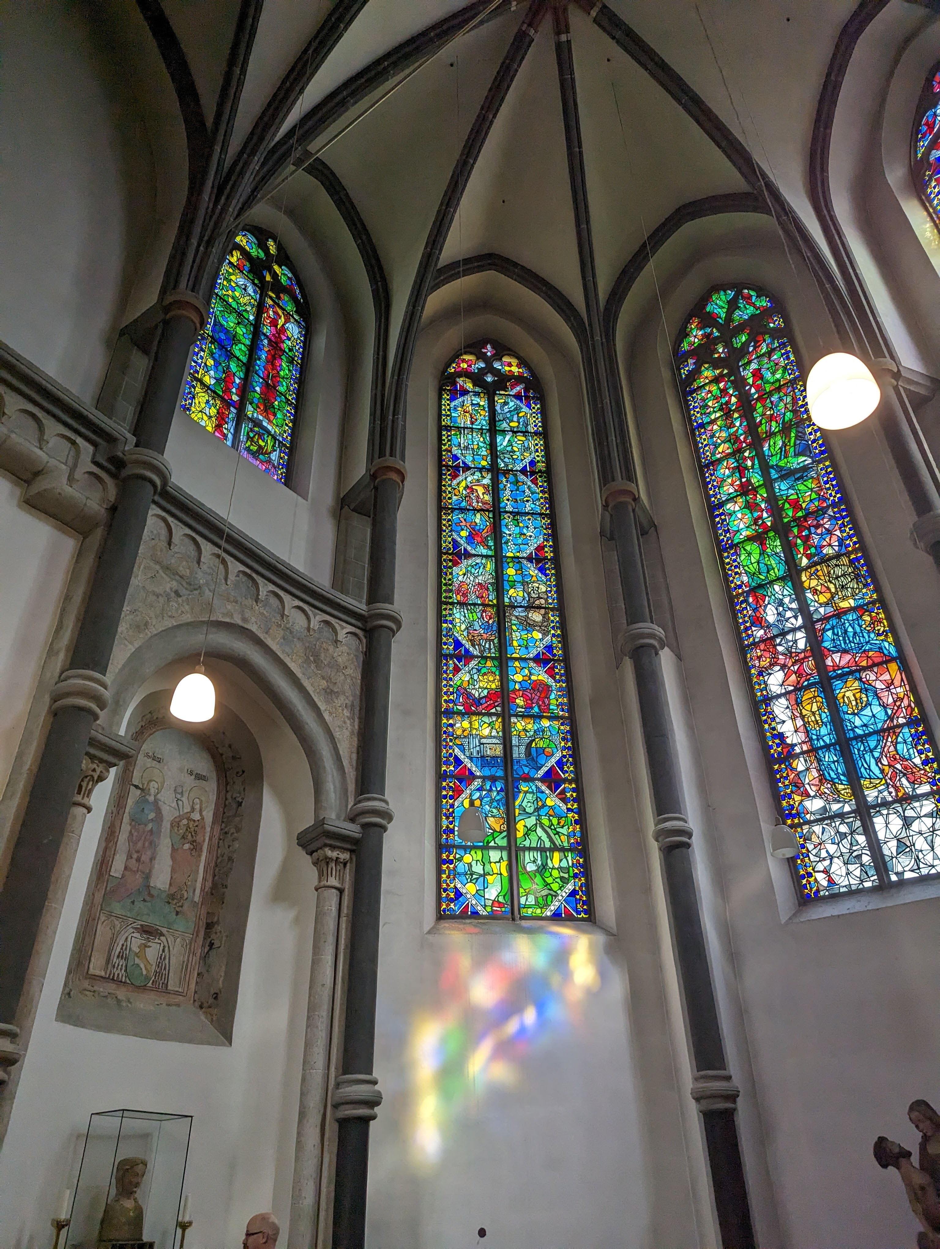 We went to St Andreas which is the church next to our hotel. It was amazing, a mix of stark and modern and ancient. The stained glass was quite modern and almost shocking, there were ancient works of art that were exposed on the walls. I loved it.