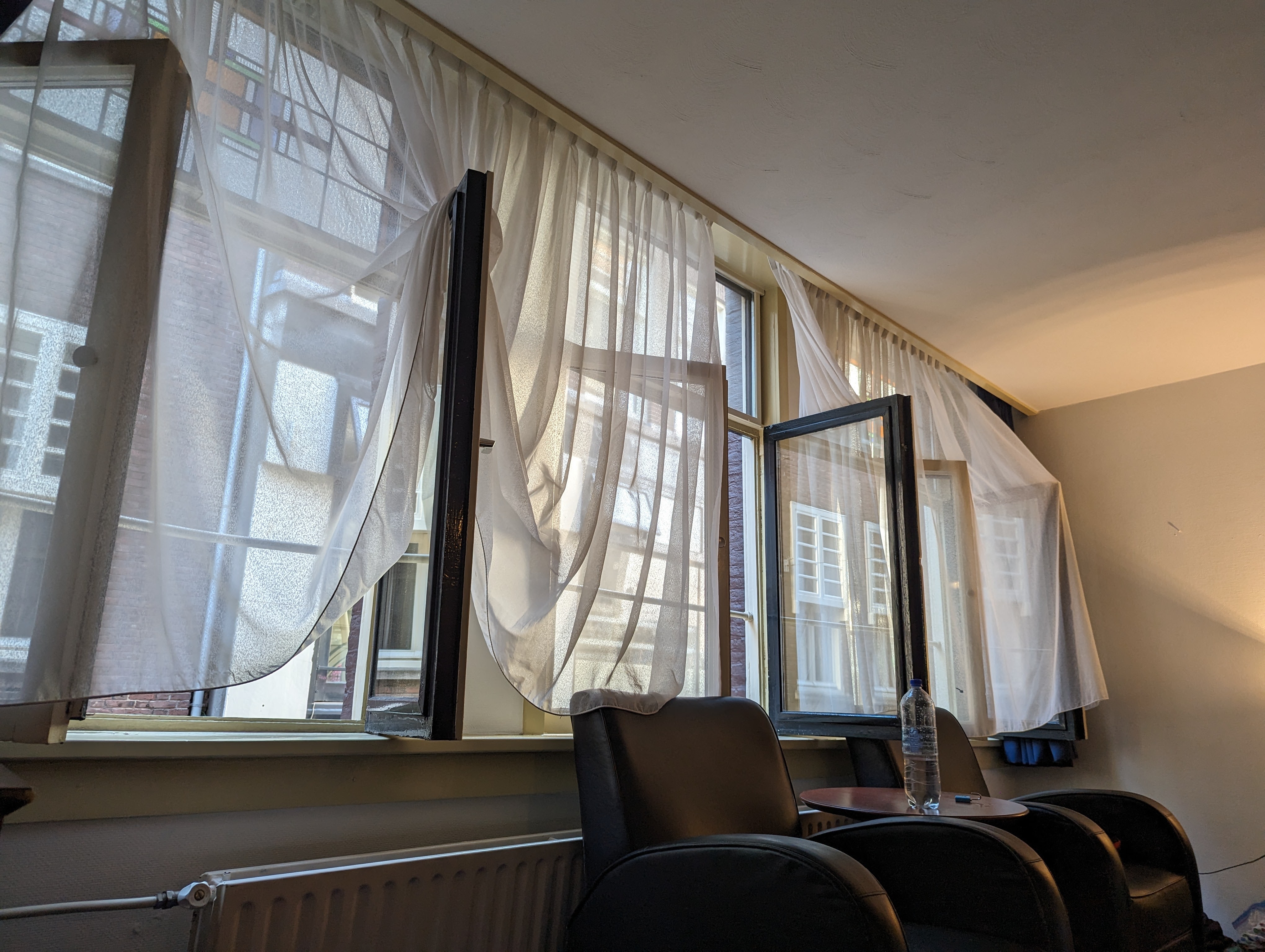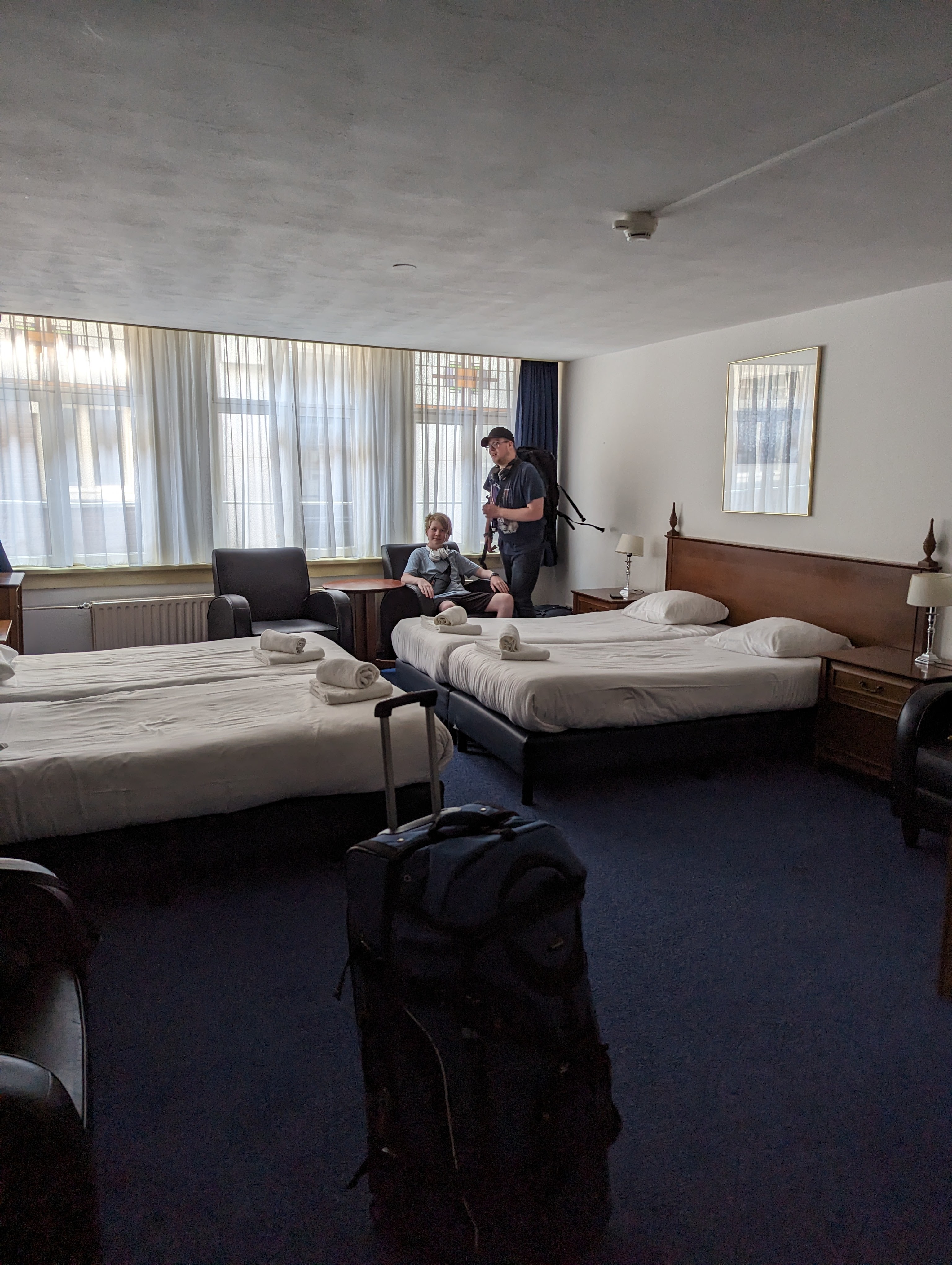 We arrived in Amsterdam and made our way to the hotel – it’s a pretty cool hotel. G&B are in another building. We had a huge room. It was quite warm – no AC. We did have a fan though.