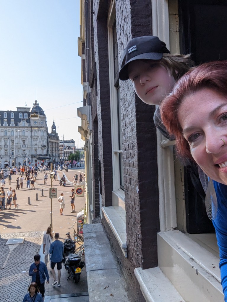 We decided to have jacket potatoes for dinner. Went to the shop, argued about eating there, found out that they wouldn’t have any potatoes ready for another 50 minutes, so went looking for other options. Turns out we all really had our hearts set on jacket potatoes, so we returned to wait. Accidentally went thru a bit of the red light district, thankfully none of the women were out. So very sad – they are put on display in windows.