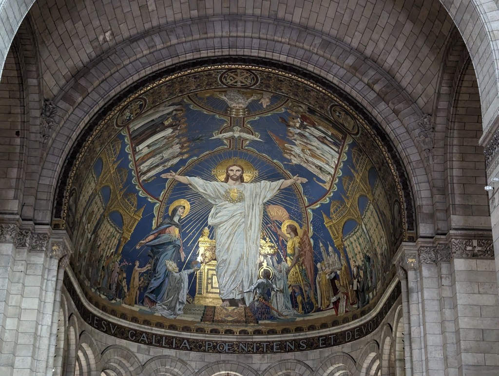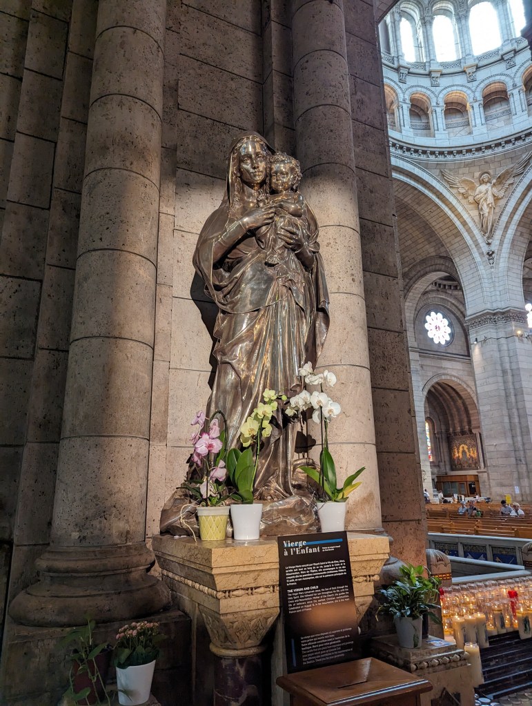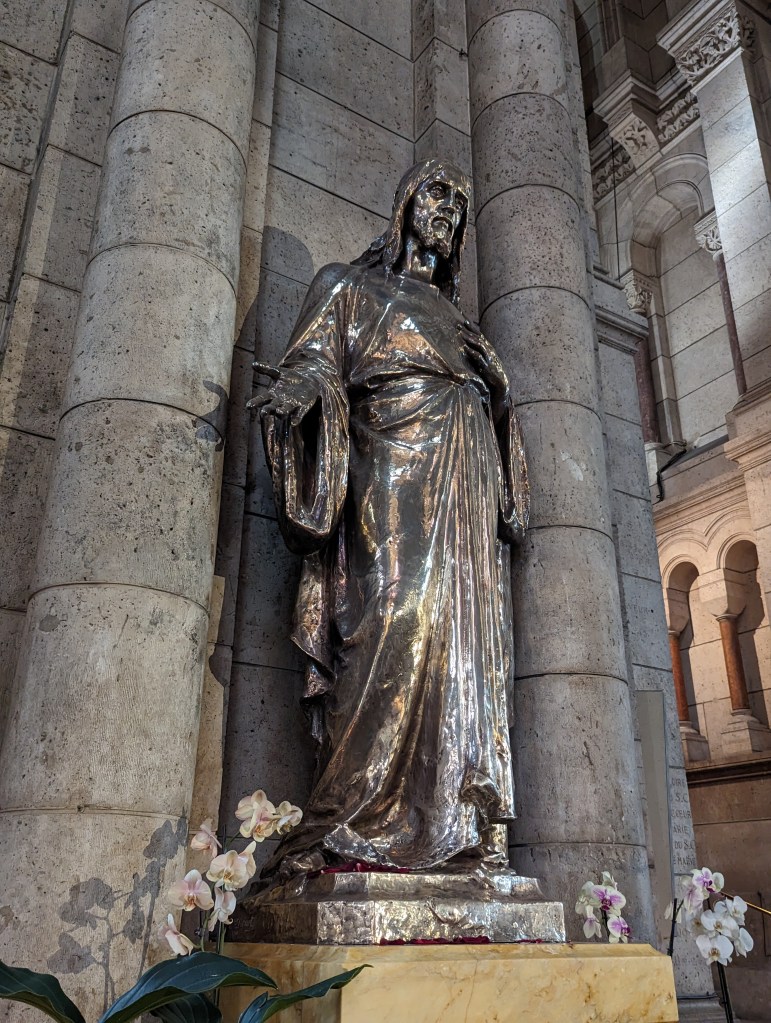 Inside, the church takes your breath away with the many incredible mosaics, stained glass, statues. There’s a solid silver Jesus, a statue of St Peter that looks like Will Farrell, a stained glass dedicated to St Dracula (actually St Vincent, but the likeness is uncanny), a golden Mary. The mosaic over the altar is incredible – it shows everyone coming and bowing before Jesus – soldiers, priests, business people, the rich, the poor, adults, children, people from other countries. It’s powerful.