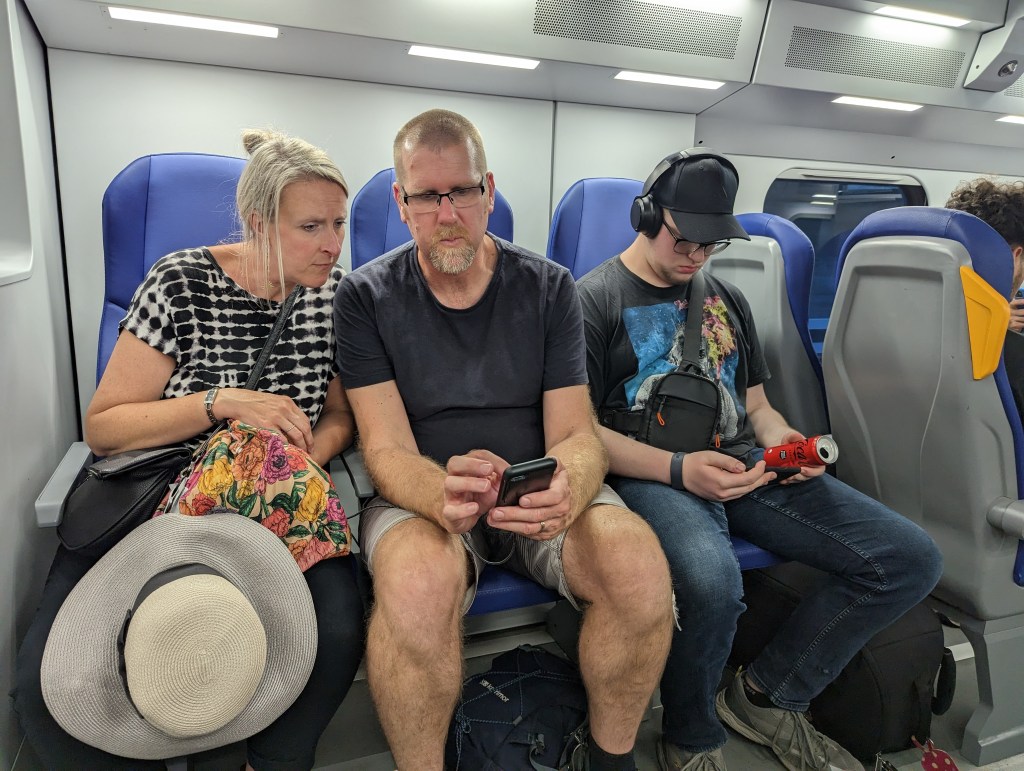 A woman on the Metro in Barcelona standing behind Colin snapped at him and told him, “Hold on to something, it’s not that hard!” So that has become a thing we all say to each other now – It’s Not That Hard!