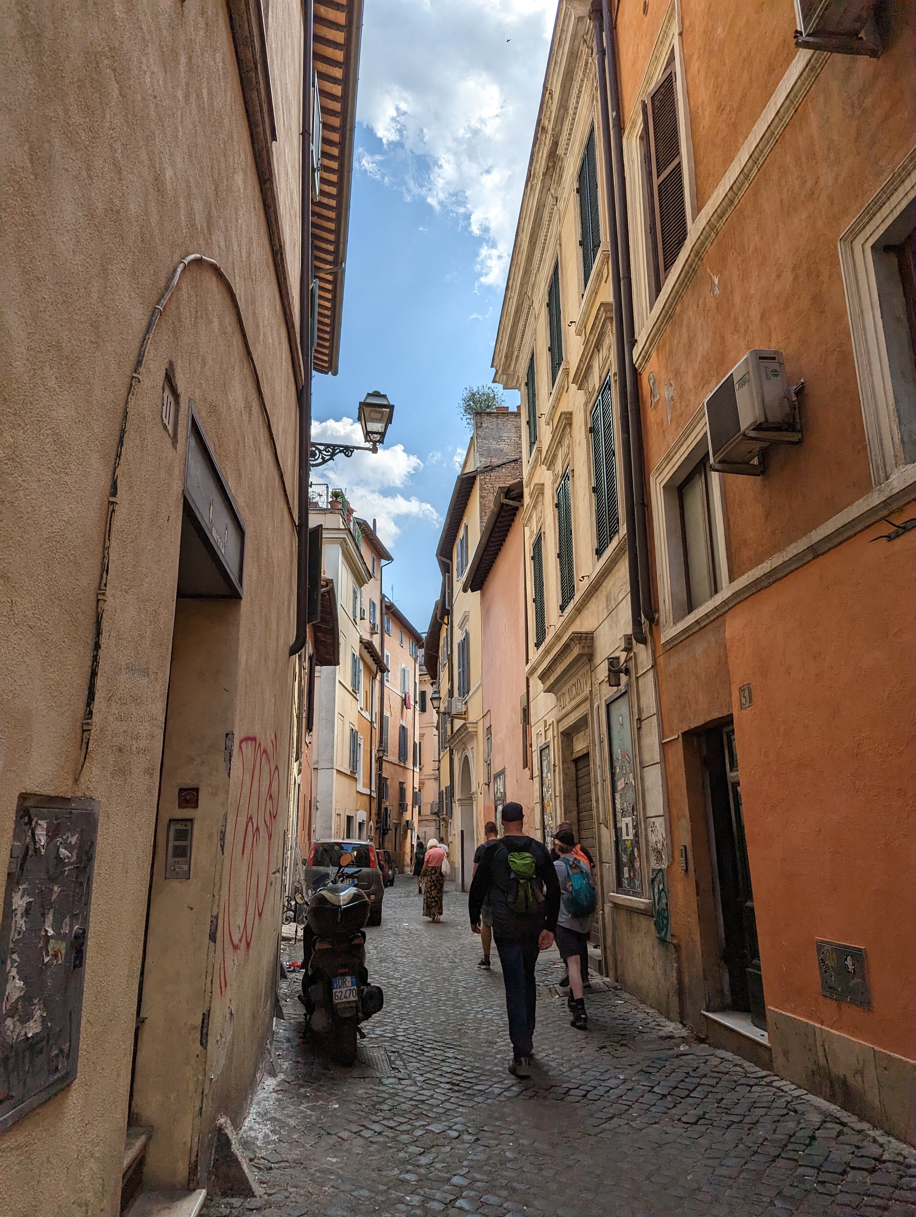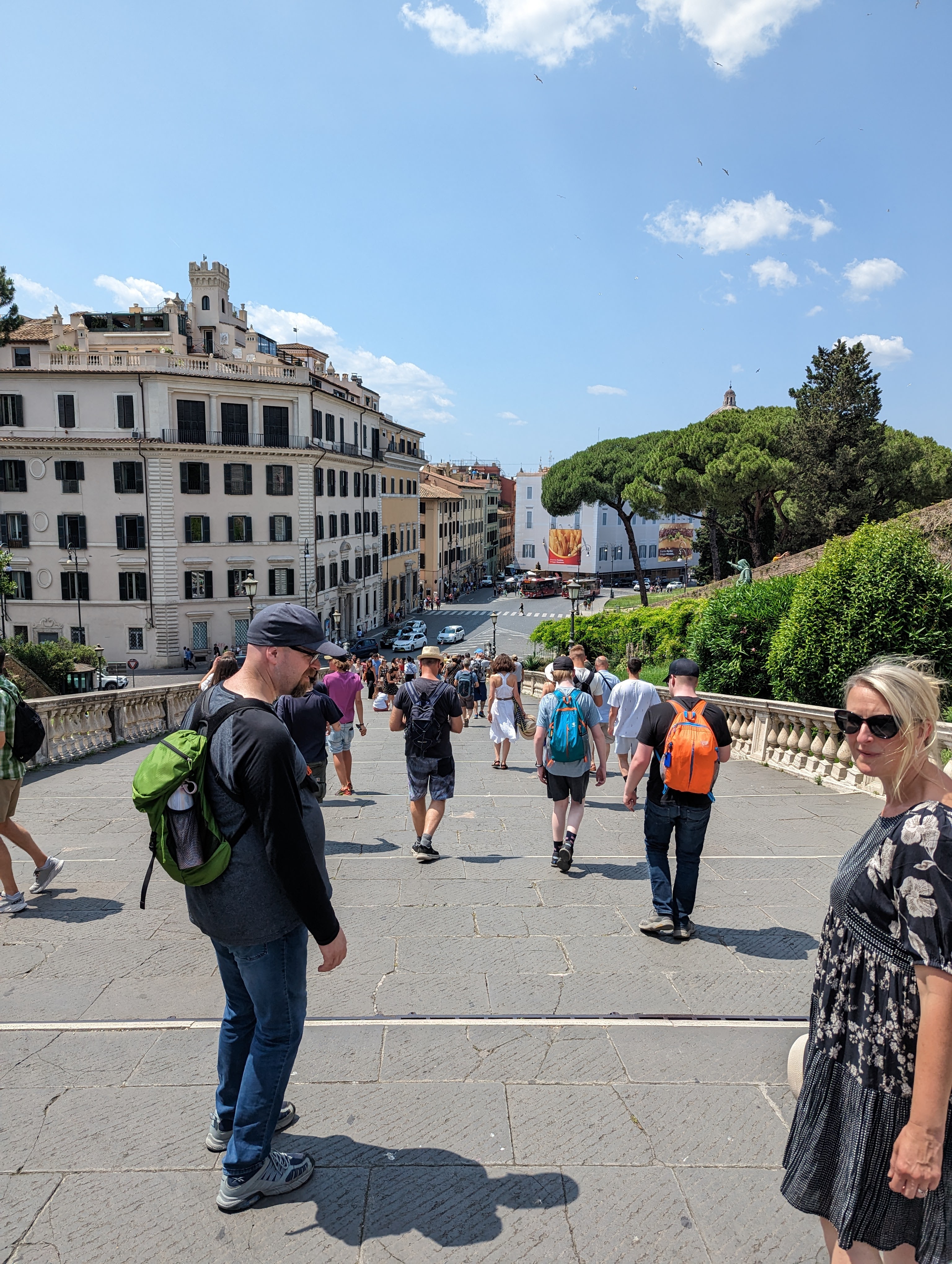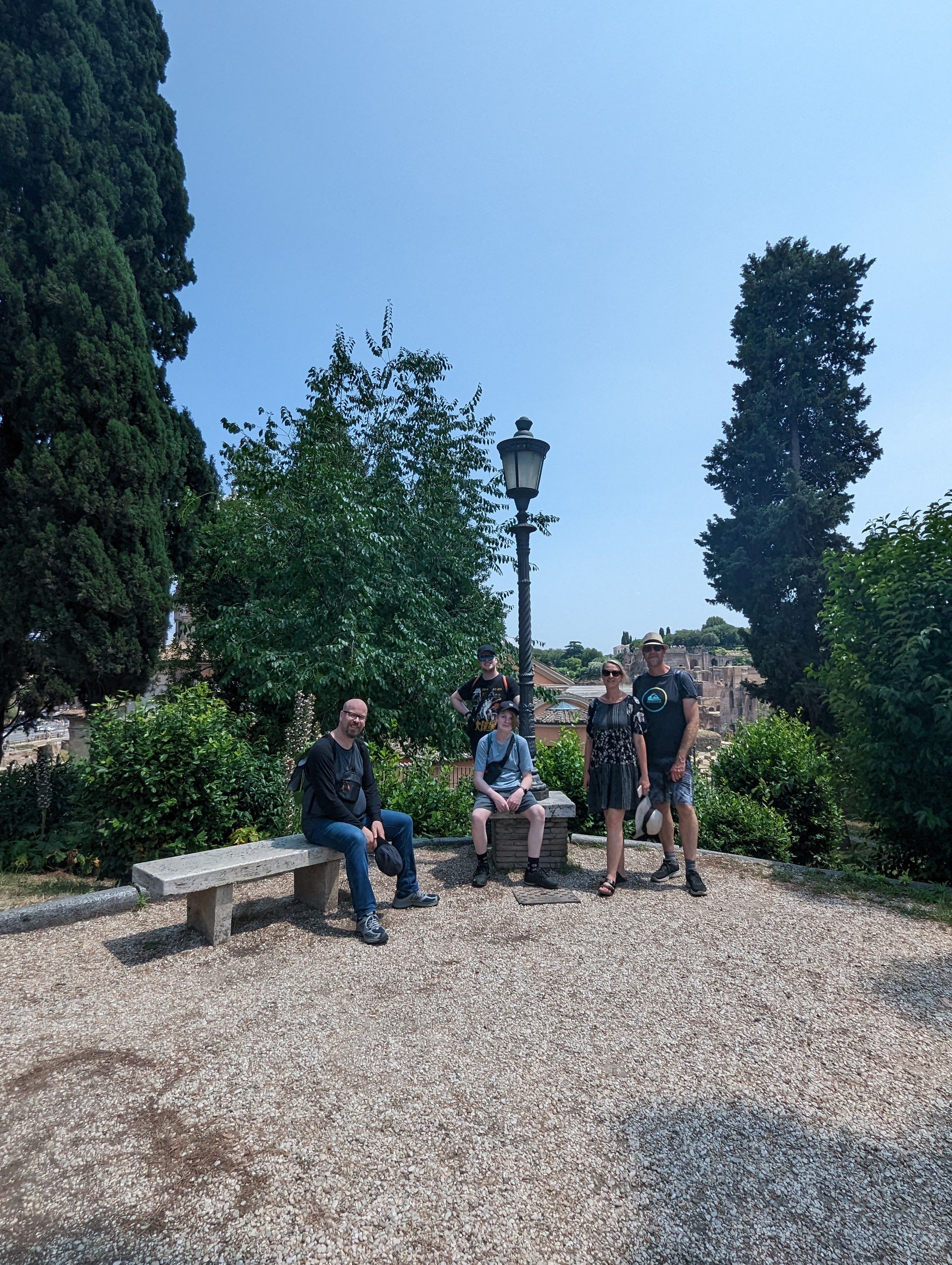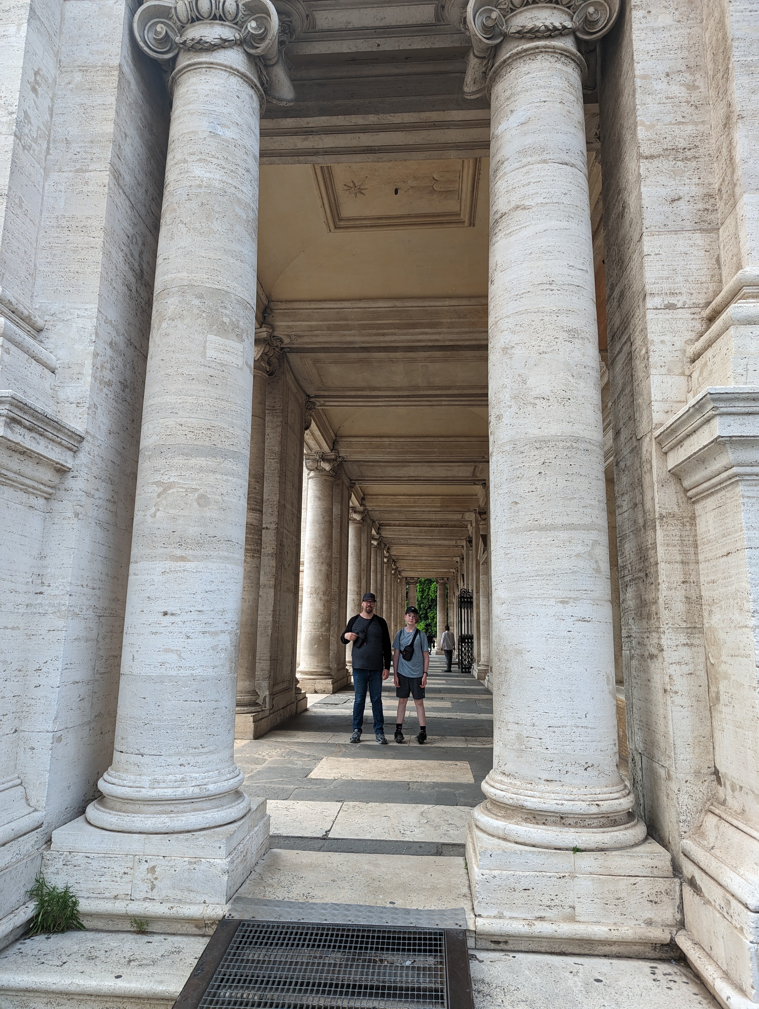 We covered a lot of ground today. We saw the Colosseum, Roman Forum, Santa Maria Sopra Minerva, Piazza del Campidoglio, Pantheon, Trevi Fountain, Spanish Steps, and so much more. The layers of history, the modern bleeding into the ancient. The moments of cool and calm when you walk into a church from the city street. The boys know quite a lot about Roman history so it’s fun to hear them talk about it and learn from them. We found this lovely hidden garden with a view of the city. We took a break there. It has a water fountain nearby to refill our bottles.