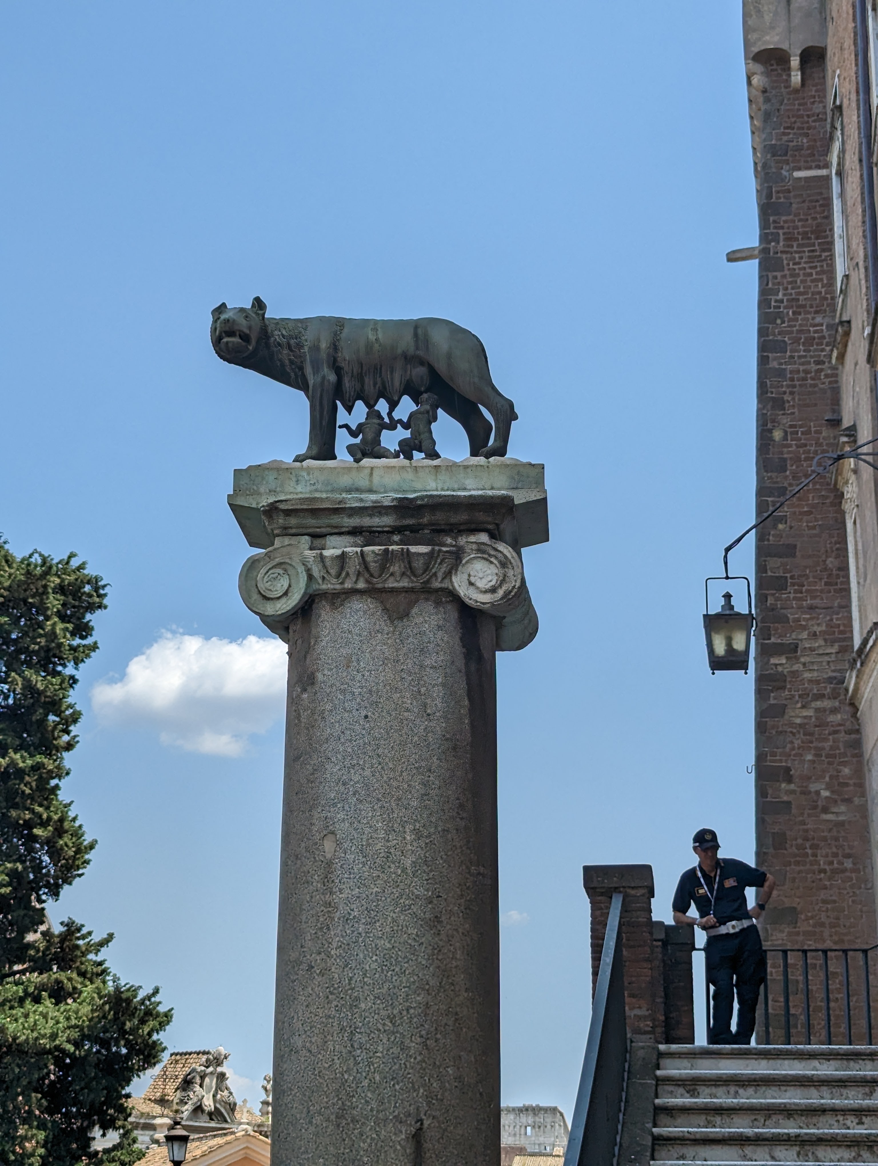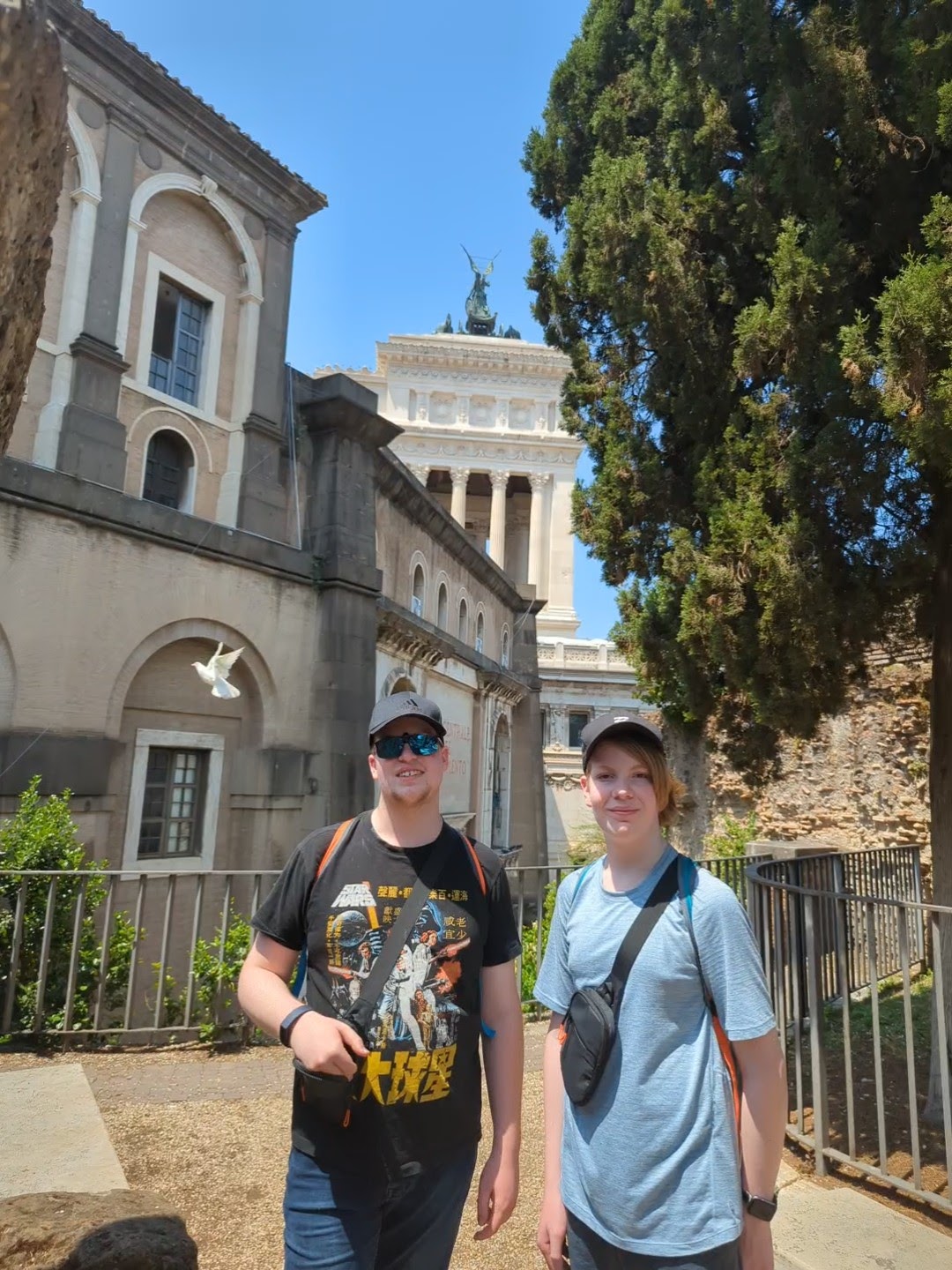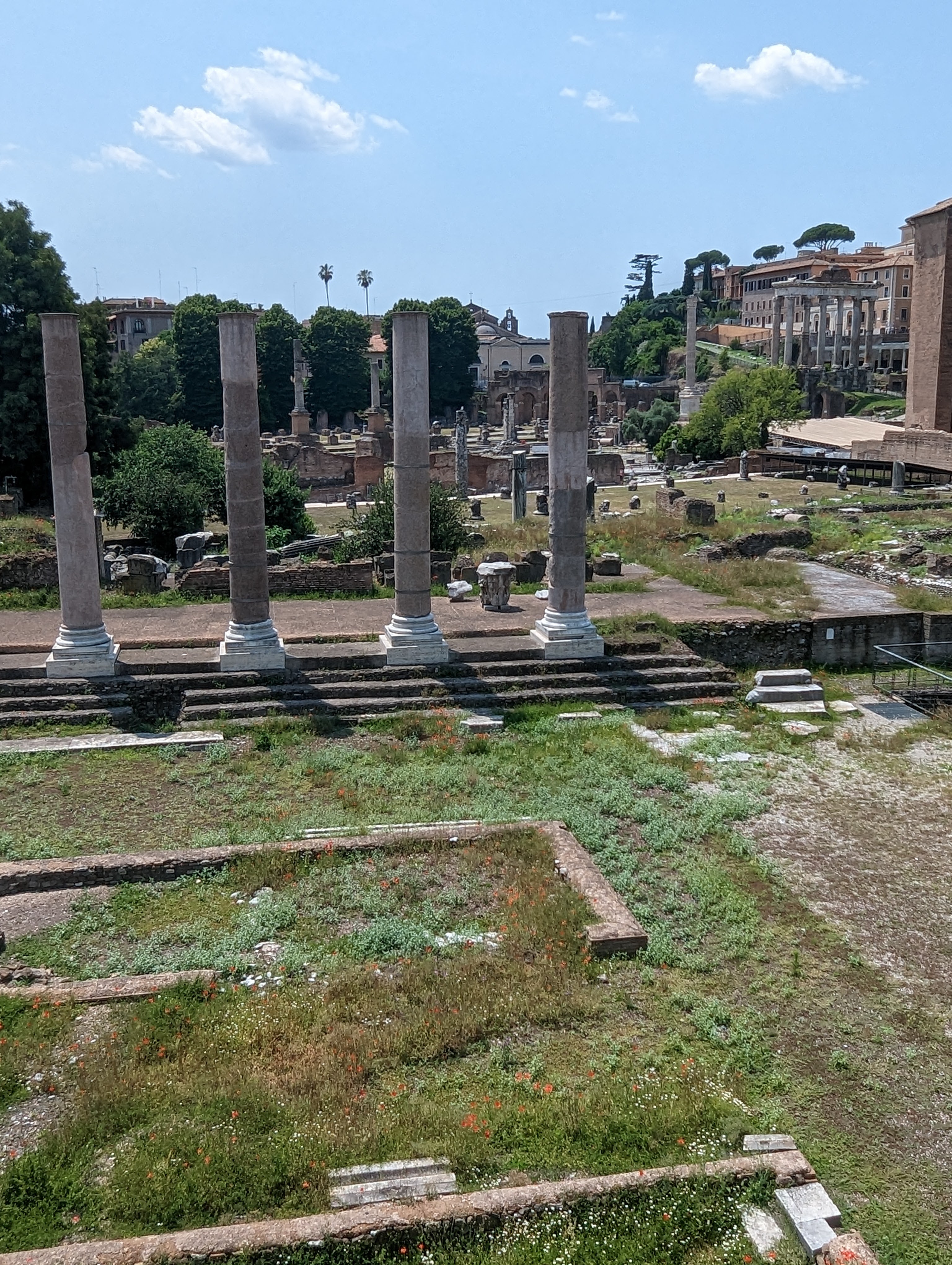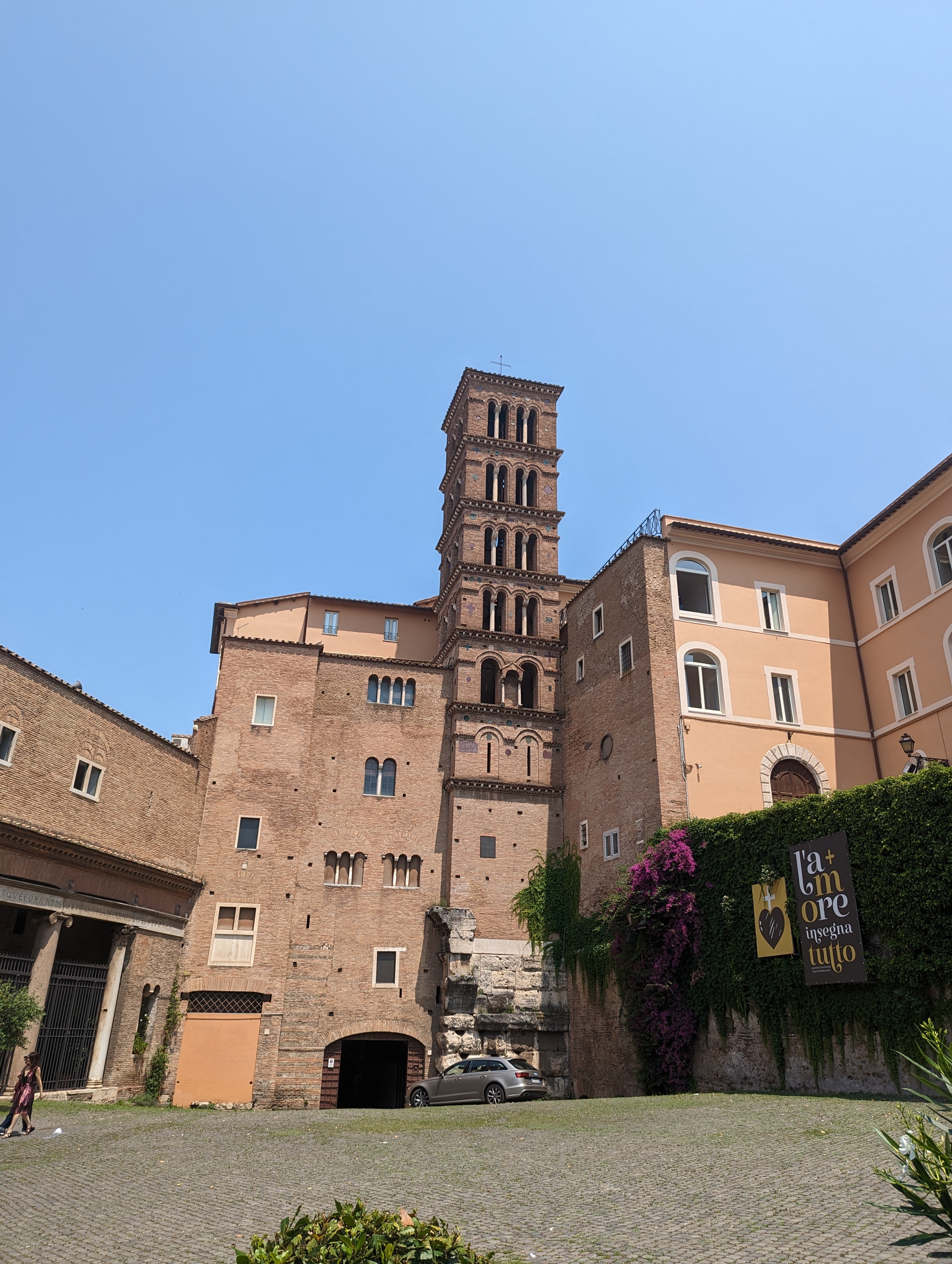 We covered a lot of ground today. We saw the Colosseum, Roman Forum, Santa Maria Sopra Minerva, Piazza del Campidoglio, Pantheon, Trevi Fountain, Spanish Steps, and so much more. The layers of history, the modern bleeding into the ancient. The moments of cool and calm when you walk into a church from the city street. The boys know quite a lot about Roman history so it’s fun to hear them talk about it and learn from them. We found this lovely hidden garden with a view of the city. We took a break there. It has a water fountain nearby to refill our bottles.