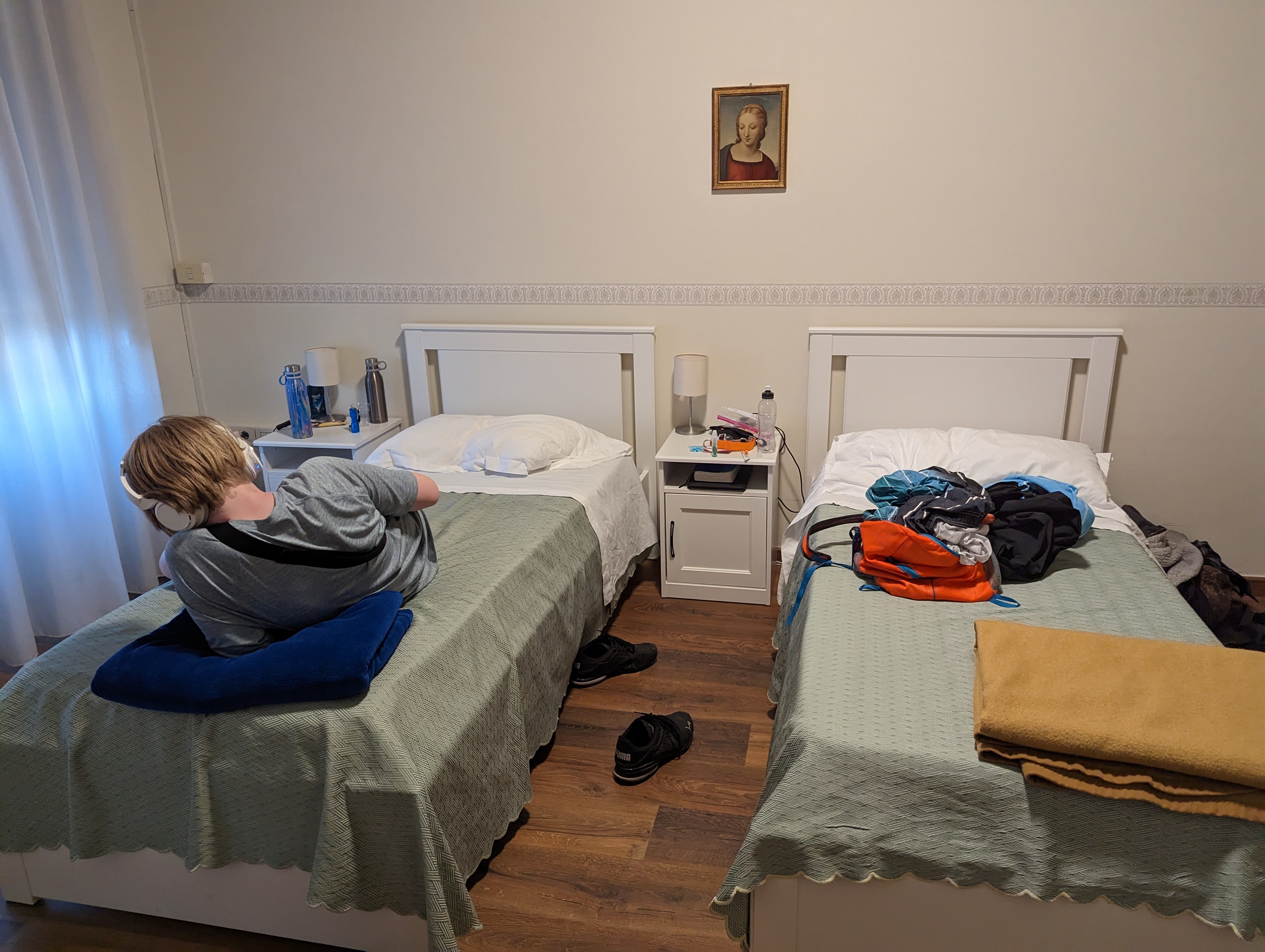 Becky and I along with the boys, navigated our way from the center of the city to the convent on our own! Colin and Graeme went and picked up our laundry. We had a laundry service clean and fold our dirty clothes – this is a brilliant thing to have done. Glad to be back at the convent. Will have a quiet evening and early night. We will take the train to Venice tomorrow.